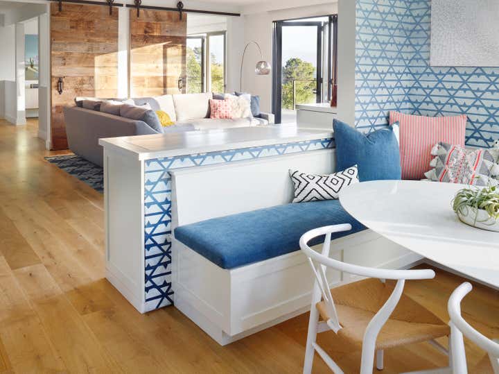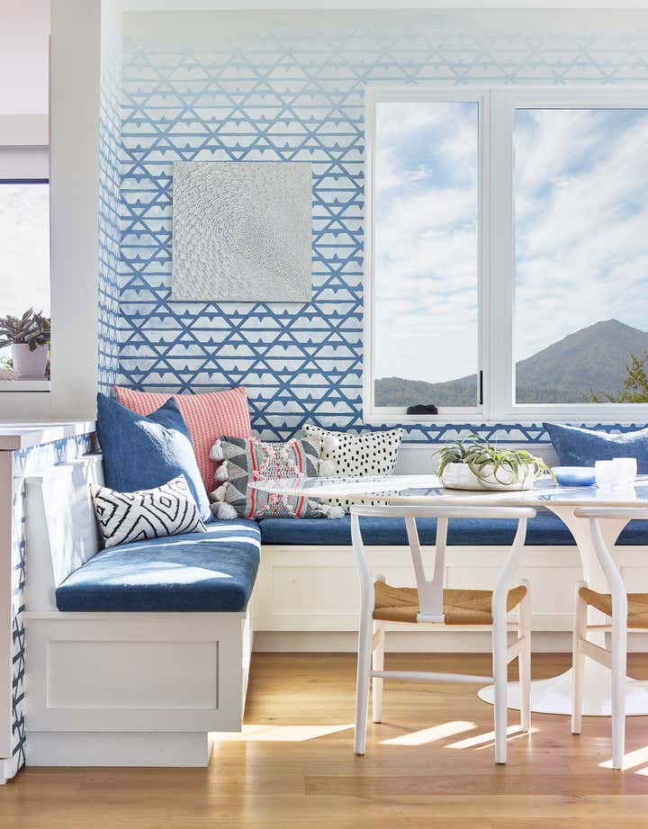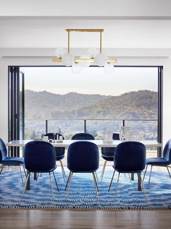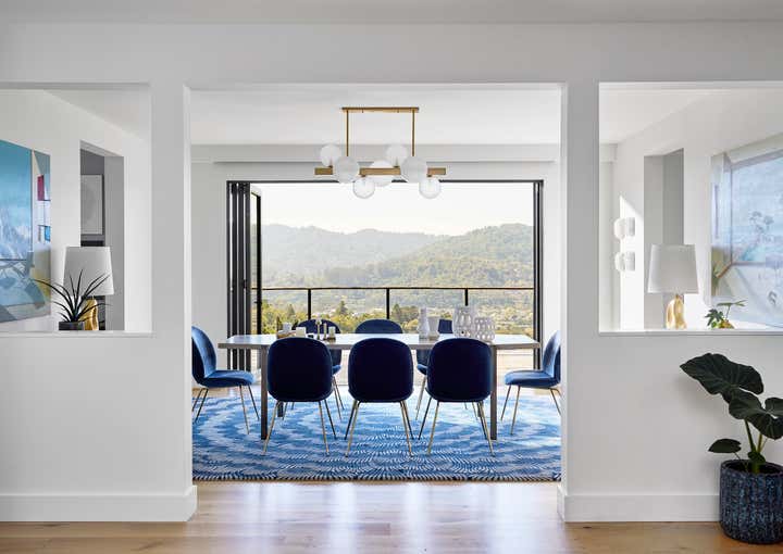 This family home is nestled in the mountains with extensive views of Mt. Tamalpais. HSH Interiors created an effortlessly elegant space with playful patterns that accentuate the surrounding natural environment. Sophisticated furnishings combined with cheerful colors create an east coast meets west coast feeling throughout the house.