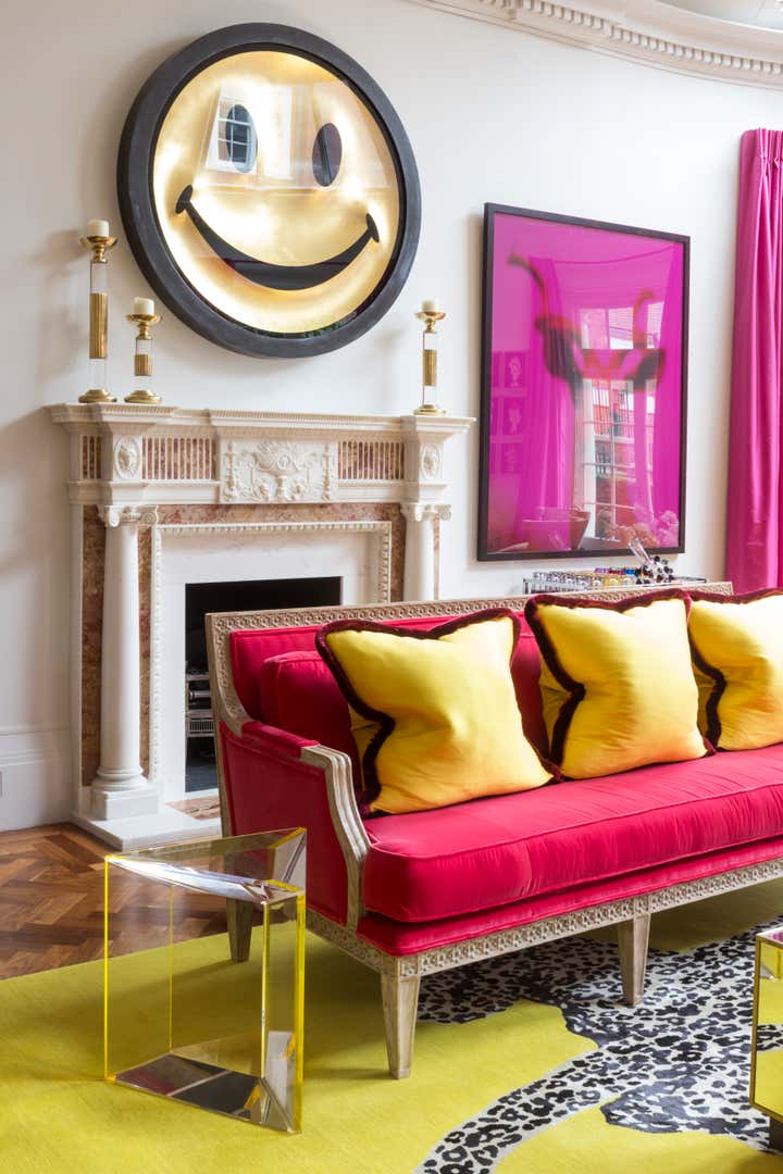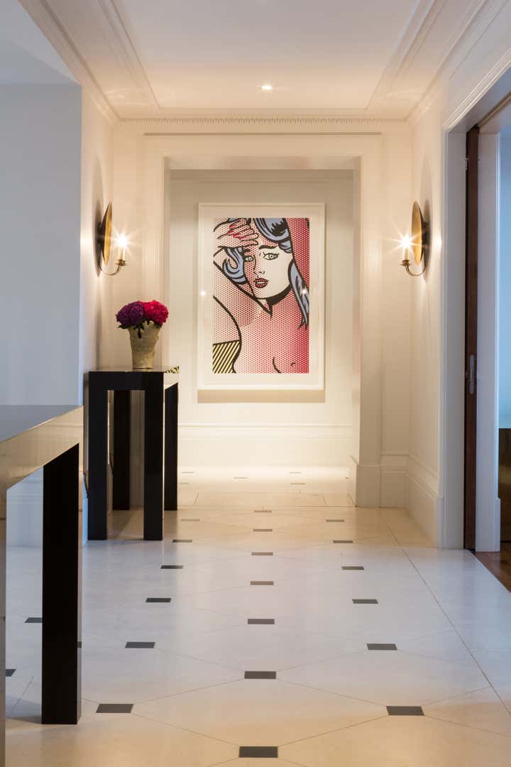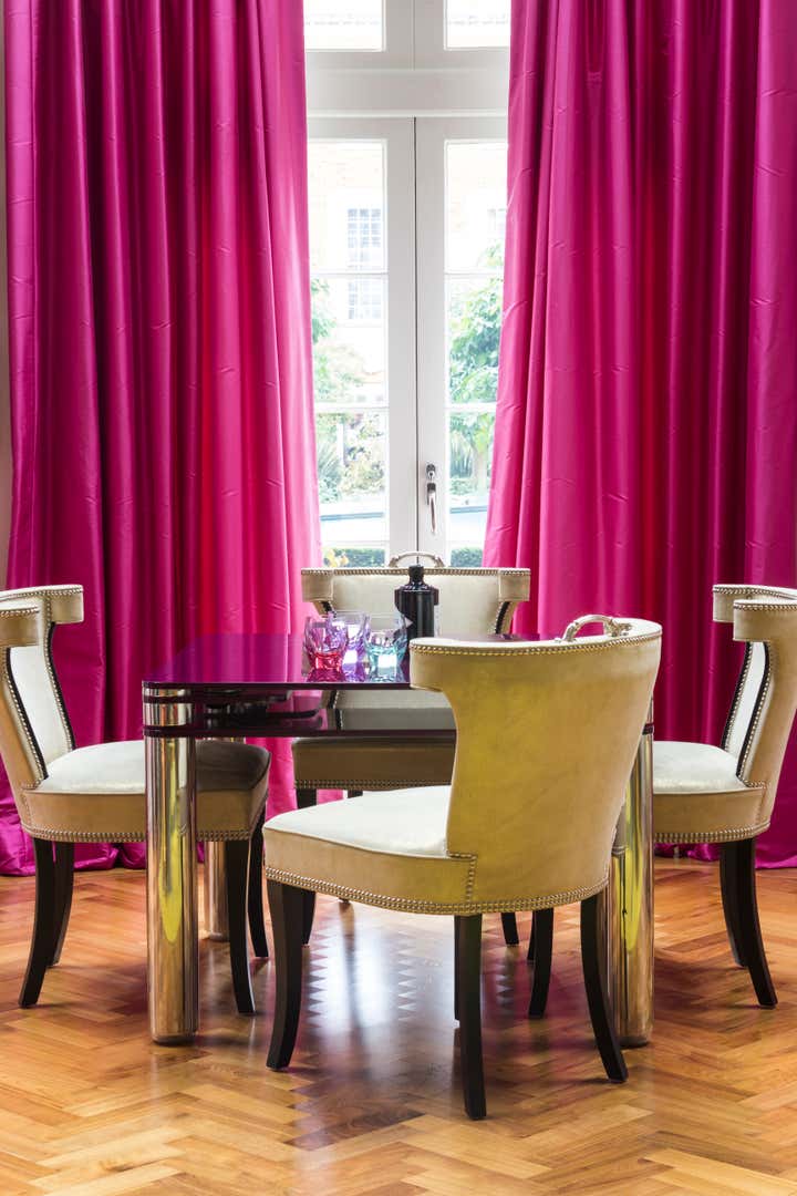 The brief from our American clients was to move away from a bland rented house into an apartment filled with colour and light. The sorbet colour scheme provides a lively backdrop to an exciting art collection and a nod to their Californian roots. Crisp silks and sumptuous velvets are handled playfully yet with sophistication and luxury
