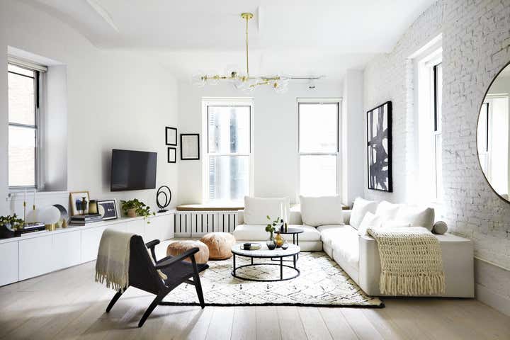 Chelsea/Flatiron Loft space. Gut renovated and stripped right back to create the most calming and monochromatic palette that felt like an oasis away from the chaos of NYC. We used a perfect mix of high and low to ensure the space had character but that they could afford to fully furnish it.