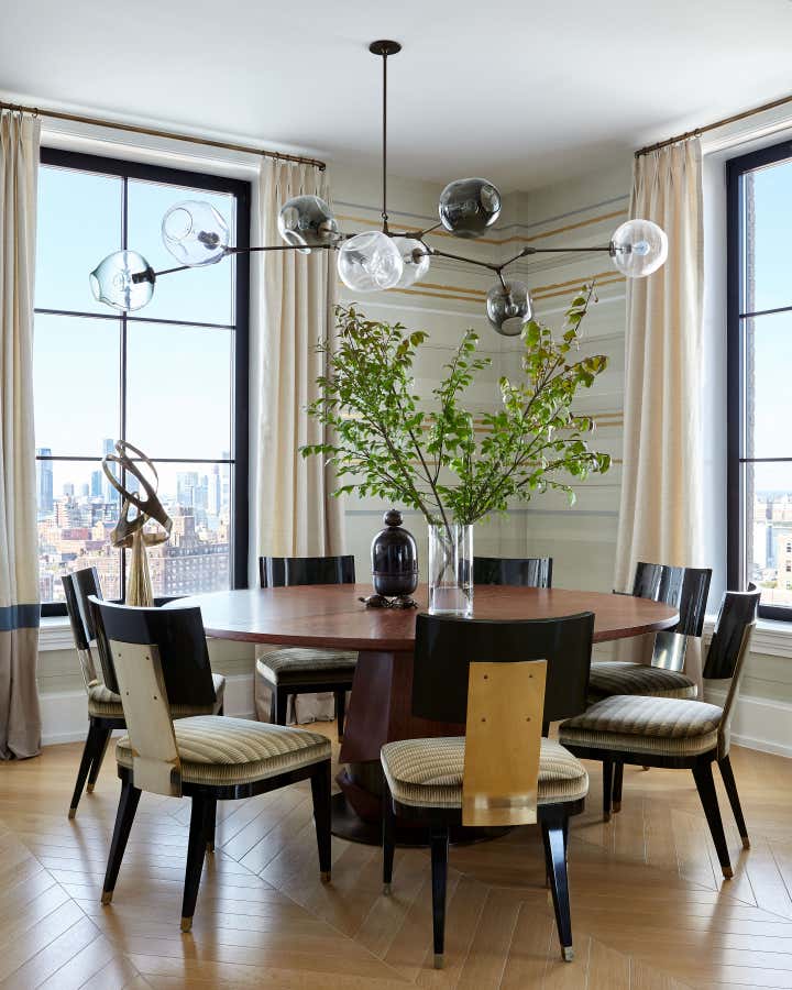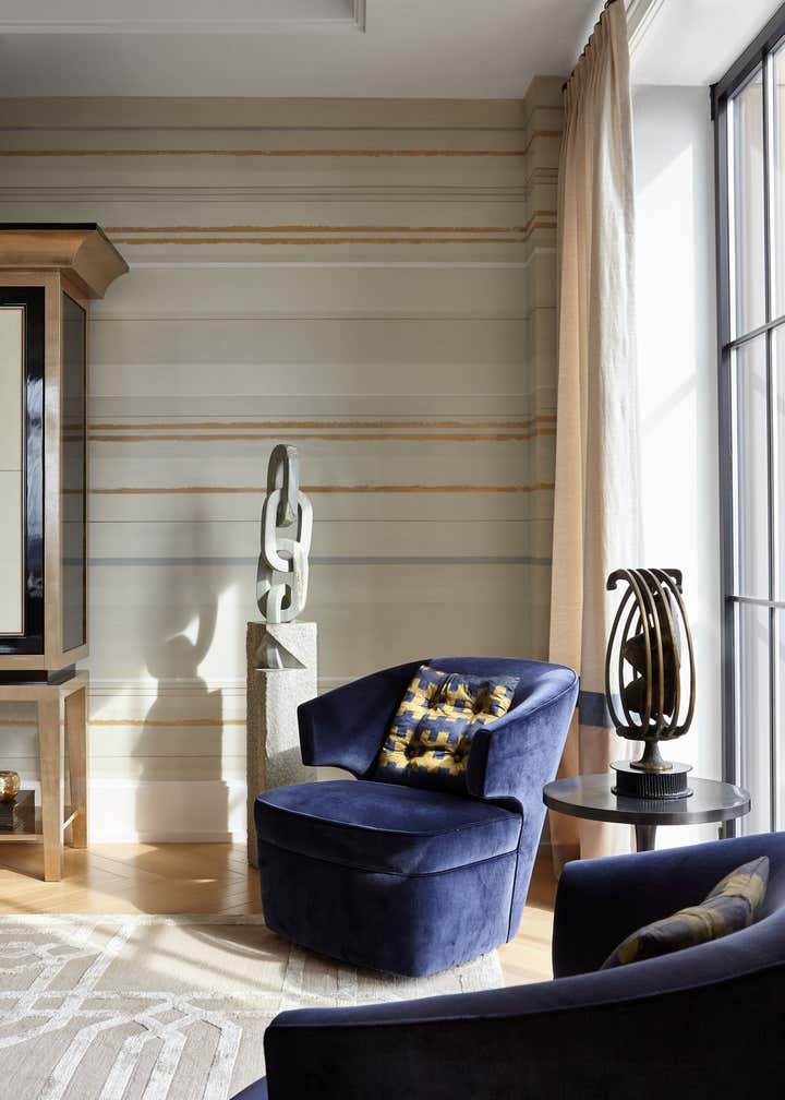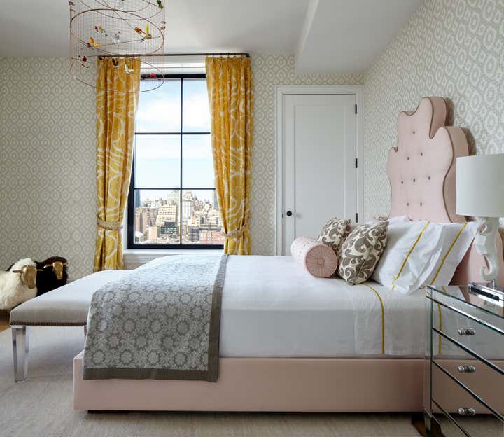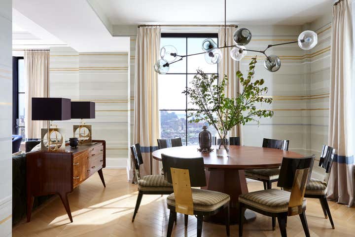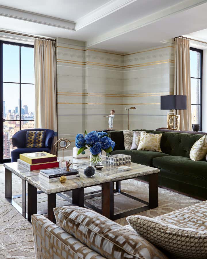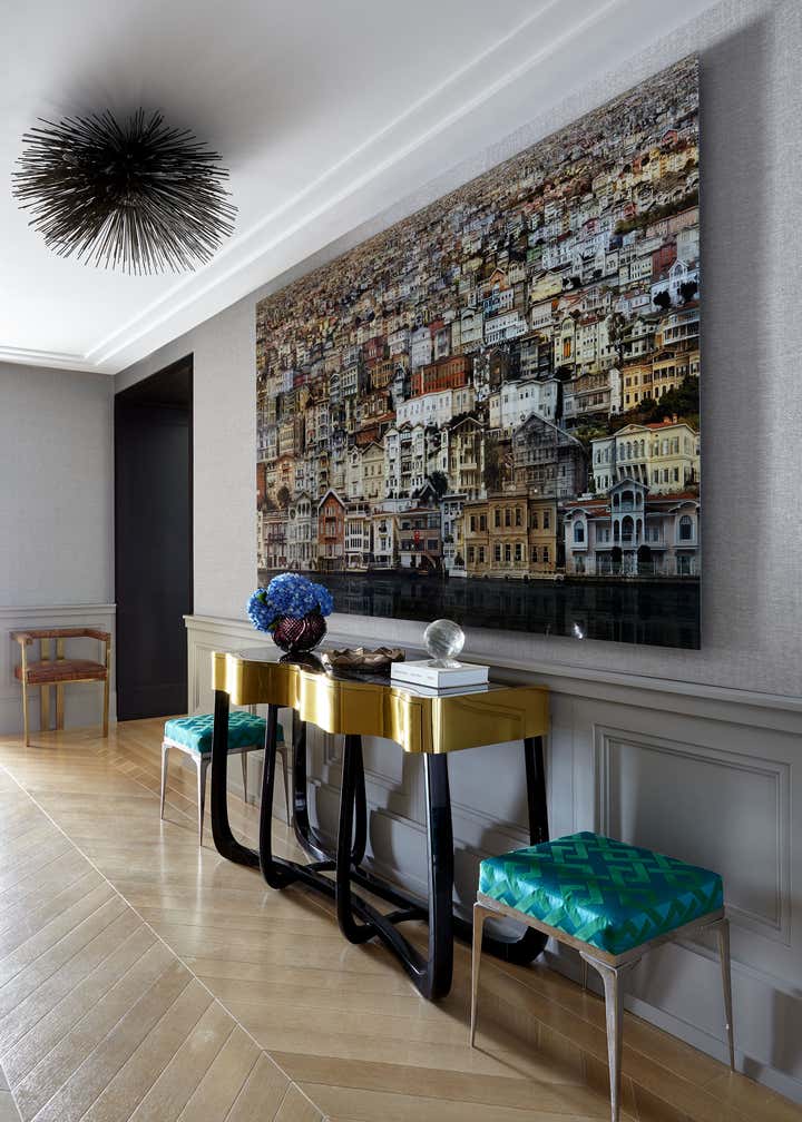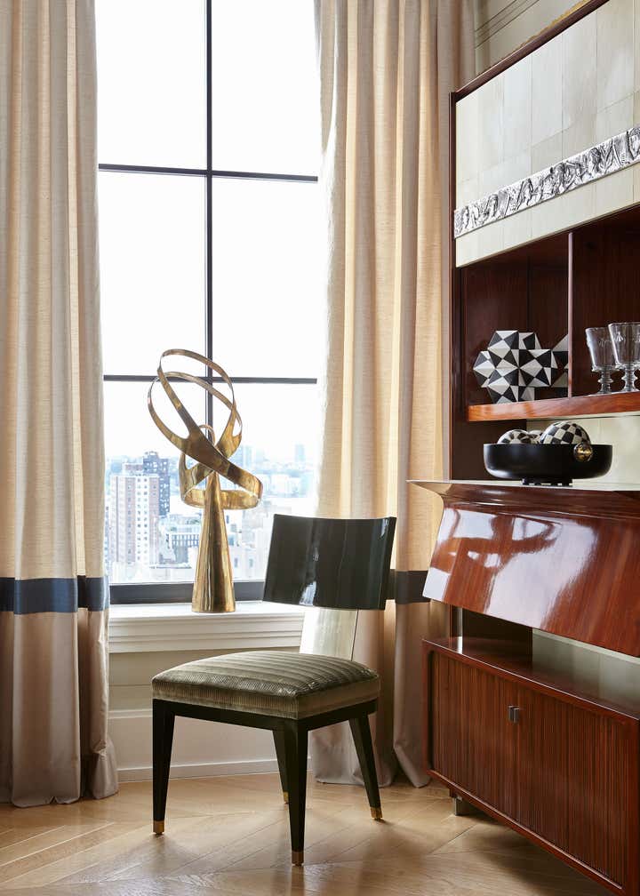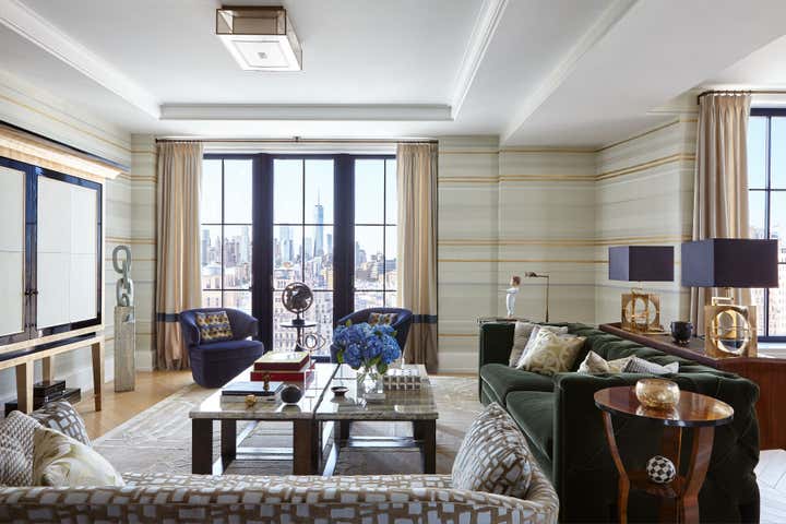 This project features an international client with a pied-a-terre in New York City's famous Walker Tower. Stunning bespoke furnishings, hand painted walls, luxury fabric and fully remodeled/combined apartment. The client’s vision was to represent their exquisite taste in fine European furniture and contemporary art while also accommodating their two children.