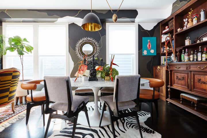 Chez Noz is the Designer's own home in Hayes Valley, San Francisco. A never-ending project, Noz has been utilizing her condo as a test kitchen for design ideas since 2010. Most recently, Noz had the privilege of collaborating with decorative artist Caroline Lizarraga to paint a custom Conspicuous Camo mural concept onto the main room walls, and with Isa Beniston, artist + creator of Gentle Thrills, on custom cartoon-tapestry-inspired drapery panels.