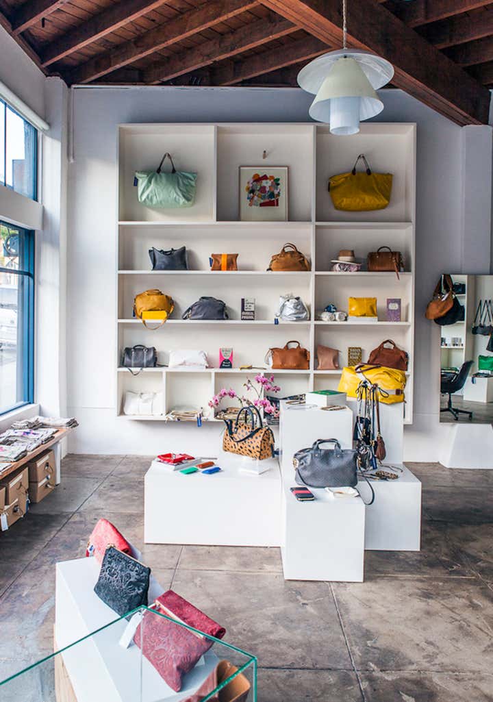 The first boutique for Clare V showcases her totes, weekend bags and clutches along with carefully curated jewelry, clothing, and accessories. Elegant boxes punctuate the raw interior with a hint of Paris panache. Every element was custom designed including the shelving and display boxes.