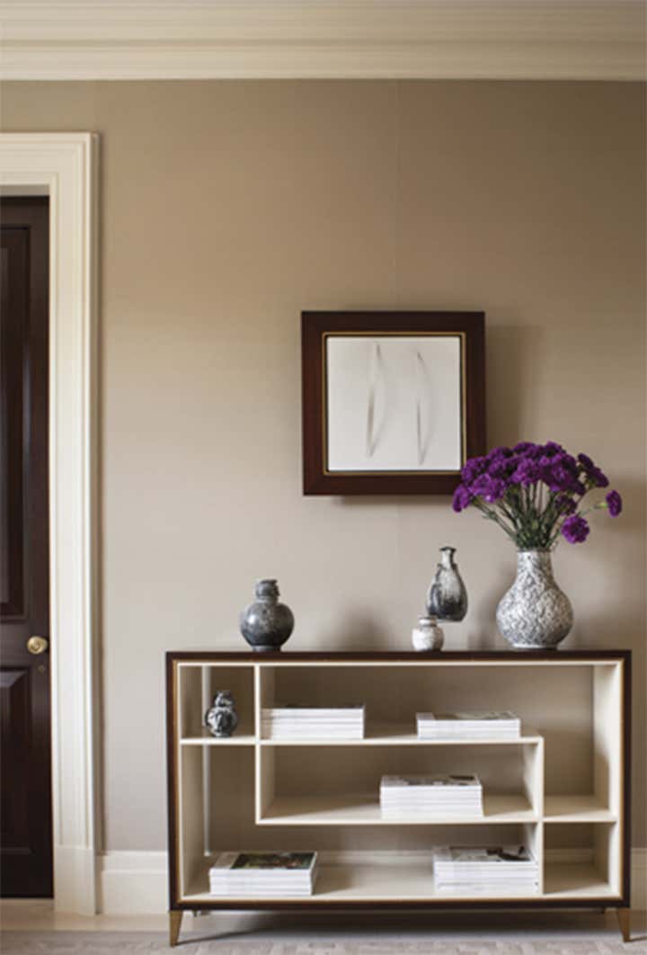 Located just outside of Georgetown, this residence reflects the designer’s modern take on classical design. Informed by classical history, the designer has infused the elements of symmetry, order and simplicity into both the interior architecture and the custom furnishings he has designed for the interiors. Dark mahogany finishes accented with bronze bring rich contrast to the light neutral palette that travels through each room. Restraint is key in showcasing the contemporary art and clean silhouettes of every carefully placed object.