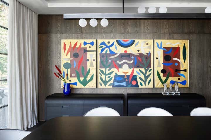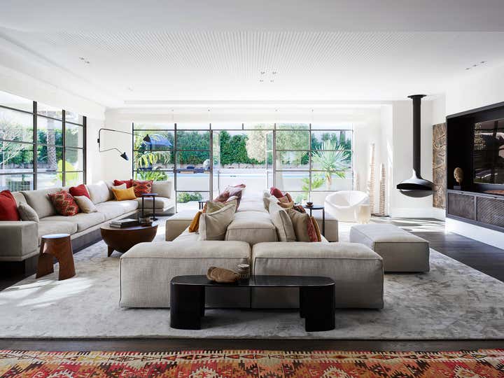 Defying a coastal pastiche, sumptuous alterations and a contemporary addition to this listed heritage home balance sophisticated curation with relaxed, beachside living. With a deliberate and layered interplay between traditional and contemporary design, we honoured the history of this grand old dame, embracing the inherent polarity through harmonious application of deft detailing, sympathetic palette and a rock-star collection of Australian art which influenced the eclecticism of finishes. Bejeweled by a sprinkling of vintage curios, Mid Century pieces and indigenous sculpture this luxurious family home remains grounded by an informal layout and natural materiality. Architecture | Tim Wright Architect Builder | Mosman Bay Luxury Homes Photography | Anson Smart