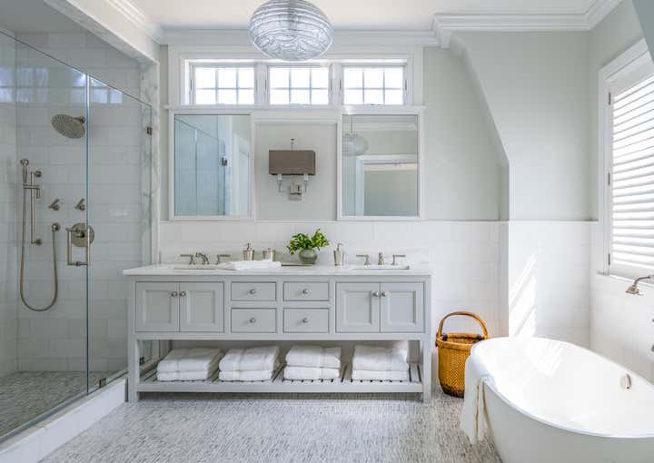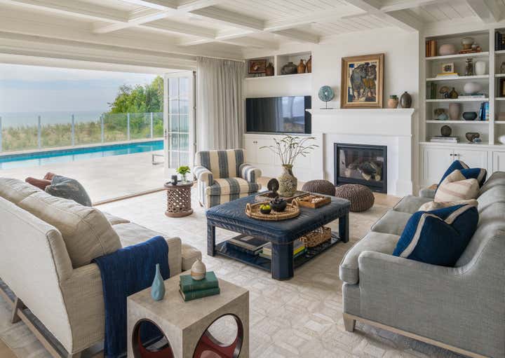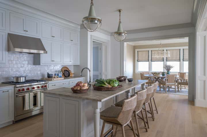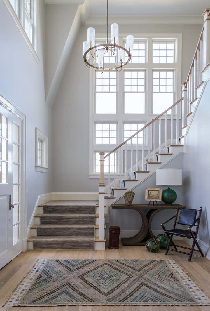 This is a new construction waterfront home in Cape Cod. The interior furnishings and details were derived from the local vernacular.