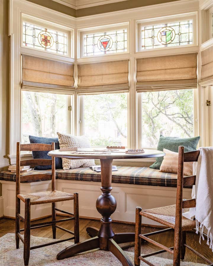 For this 1915 Tudor home located in Seattle’s University District, two of its most beautiful original details – the millwork and the stained glass – were begging for center stage. When I realized the millwork could become the (painted) muse to highlight the colors from the original stained glass, the entire design approach was determined.