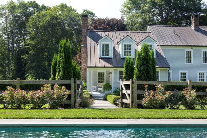 The homeowner, a long-time friend of Glenn Gissler Design, asked us to reimagine the exterior and interiors of their home. The client, who grew up in rural Kentucky, imagined a farmhouse reminiscent of her childhood but with a gracious update incorporating modern comforts and her sophisticated aesthetics.