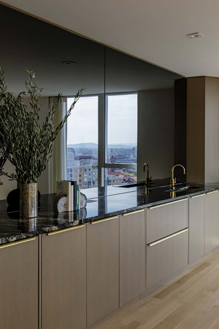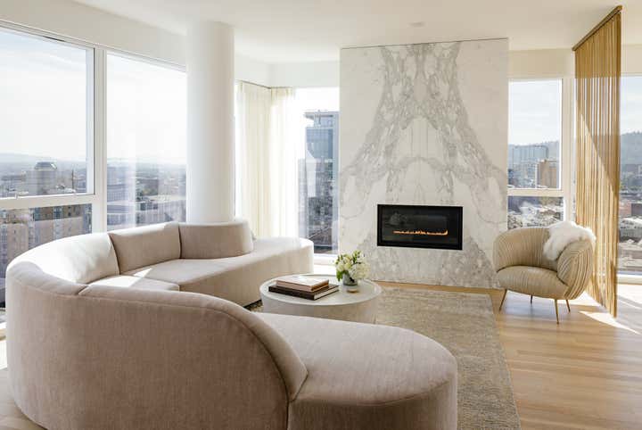 This Portland, Oregon condominium is elegantly finished with custom details. JHL design consulted on finishes and designed custom furniture and casework.