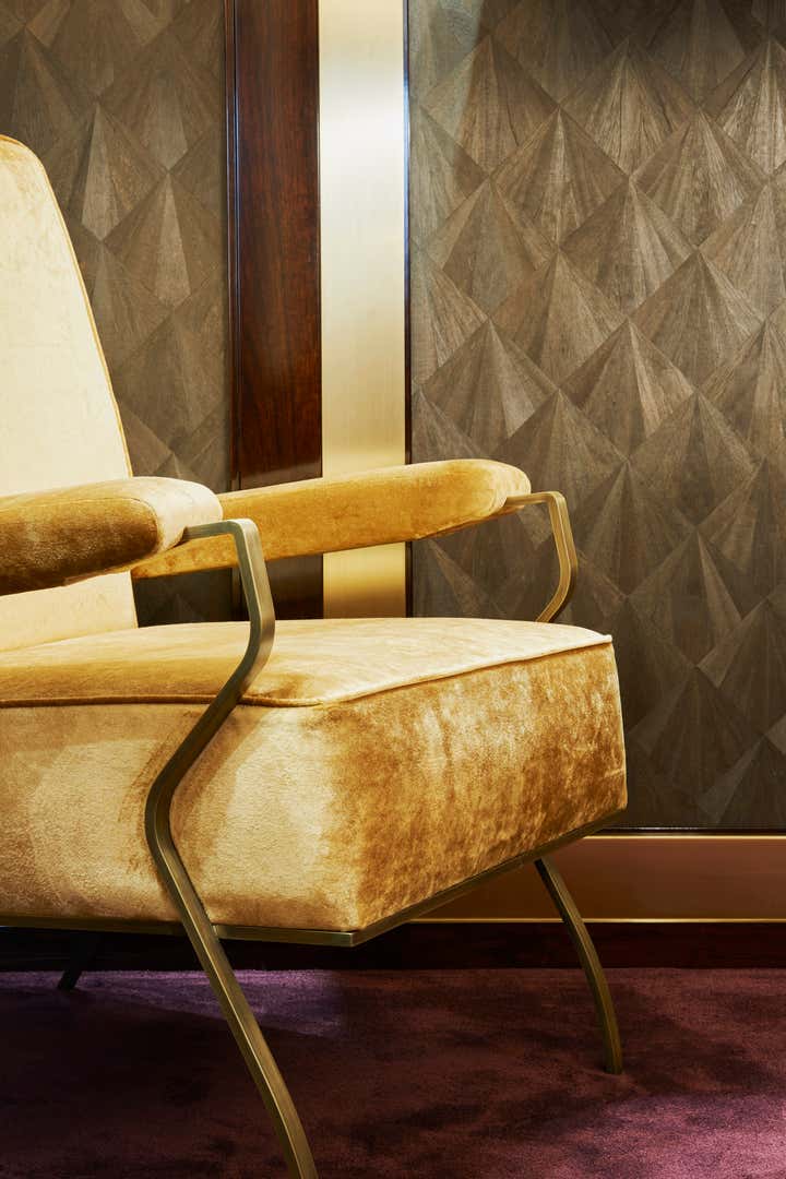 The three rooms of the store each have a specific purpose. The Corte showcases the main collection of jewellery and is realised in amethyst tones and shimmering white. The Stanza Del Tempo celebrated the brand's timepiece collections against a dark and dramatic backdrop. The Grand Sala is lined in pistachio-coloured silk and acts as the drawing room to the store with an intentional residential feel.