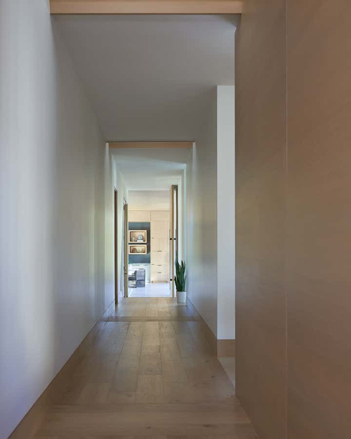 The Design Team captured the client’s needs and dreams by combining the elements of the desert landscape to sculpt the interior with authentic materials, rammed earth fireplace features, ceruse oak millwork, raffia wall textures, pigmented formed concrete, and leathered limestone flooring. The color palette and materiality of the home would be based in neutrals that would play back and forth with tension in cool and warm tones while also including textural interest.