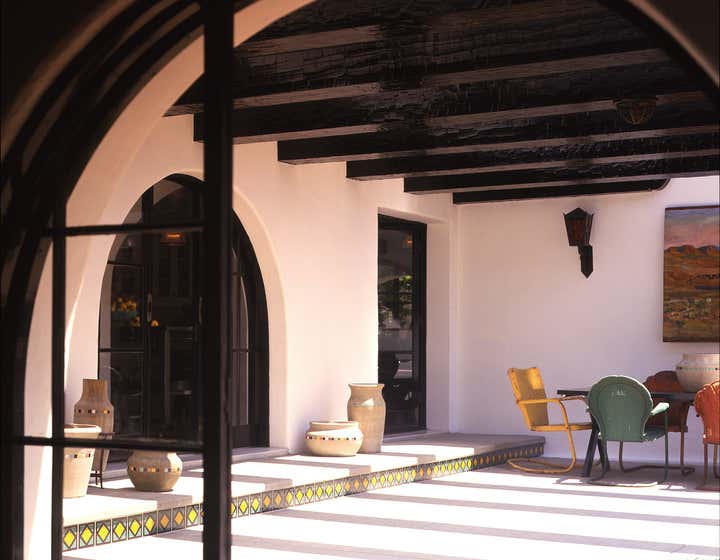 This 1926 vestige of the romantic architecture of Wallace Neff was restored with abiding respect for its simplicity and modest scale in a town that loves to level and then build bigger. Keaton ultimately saved an important and historic home that has remained intact through successive owners that included Madonna.