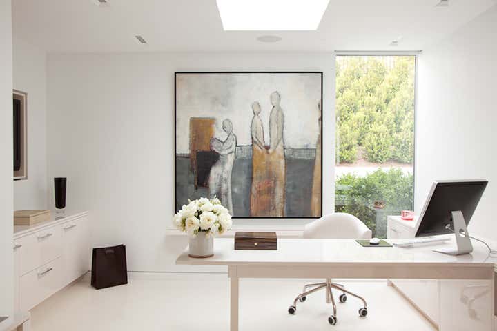 Originally 1960s ranch perched in the Doheny Estates of West LA, the new design by Jennifer Post took this 3, 500 sq. ft. space to a different concept that suited the client, a celebrity, who wanted to feel calmed when she came here to hide from the clamor of public life. It also answered her client’s wish for a space that would feel welcoming to guests and offer a variety of spaces to move about, relax and dine inside and out. In place of a ranch house came a new layout, lots of glass, a formal entranceway, a great room for indoor entertaining with gorgeous views of the custom backyard oasis and downtown LA, a master suite with a huge walk-in closet and a serene home office. The palette is quiet and subdued enhanced with custom Italian furnishings and silk plush handmade rugs; the space light with panels of glass charting the sun, blue sky, and all that Jennifer wove into the newly sculpted landscape.