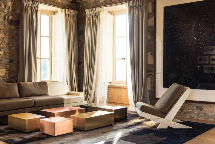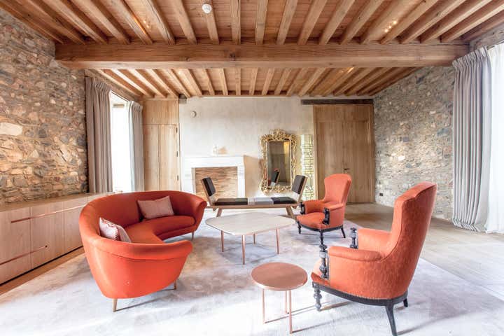 Renovated with a focus on the balance between architecture, the earth, and the sky, the Domaine des Etangs has been transformed into a hotel. Between the past and the future, the interiors of the ancient château were redesigned taking cues from the middle 20th century, with contemporary art by the likes of Gio Ponti and Martino Gamper.