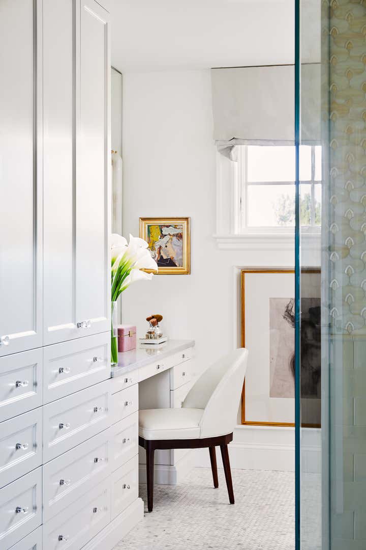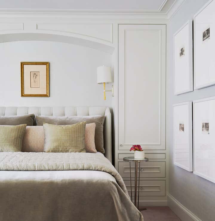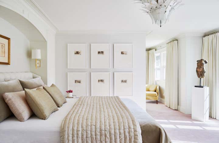 With its new wall of French balcony doors, arched millwork, well-appointed dressing room and bath and works of art by Renoir and Chapon, this master suite renovation now exudes the quiet luxury of a Parisian residence situated somewhere in Saint Germain.