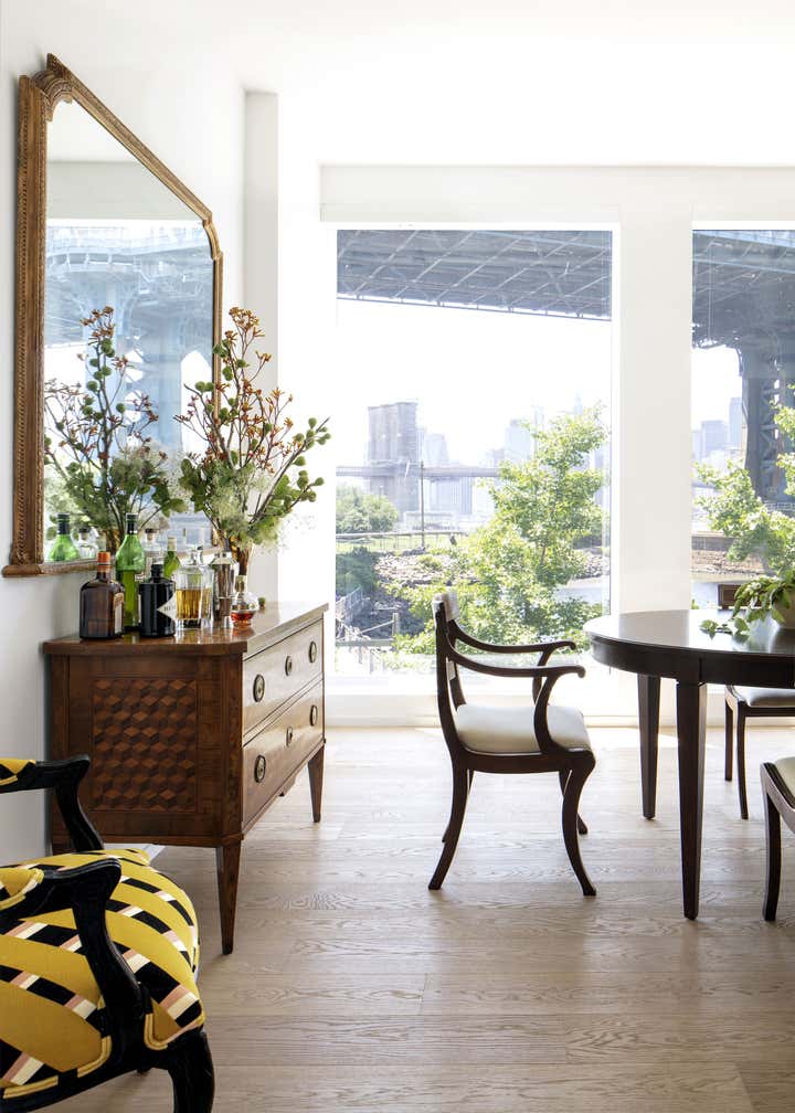 A mix of traditional antiques and modern pieces in a waterfront Dumbo apartment.