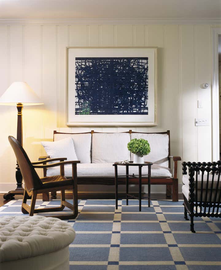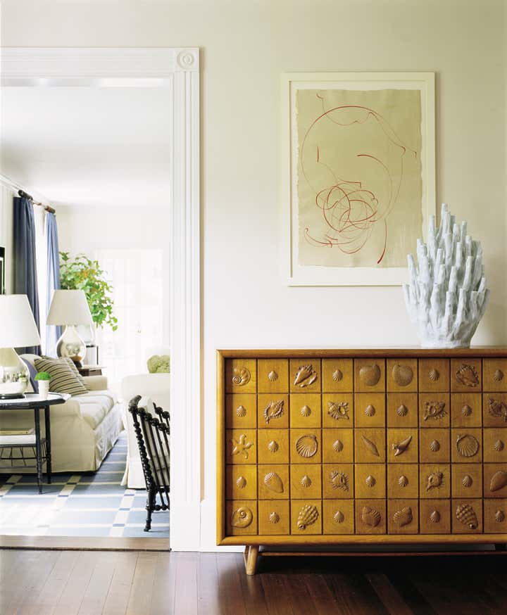A turn-of-the-century shingle-style house in a prestigious enclave on Long Island's south shore. Of the owners and their aesthetic, "This is a modern family living in the present," says Hayes, "They don't dwell in nostalgia or sentiment. They simply like the old rambling house, which, I think, gives them a sense of spontaneity and freedom that they don't experience in the city."
