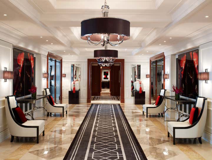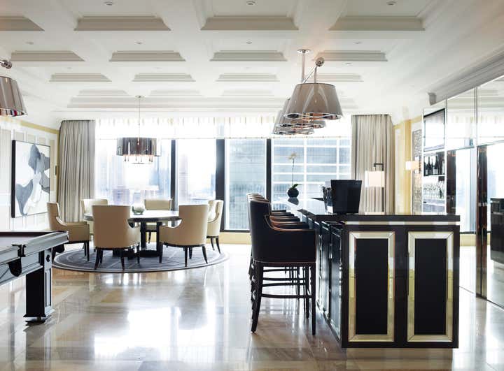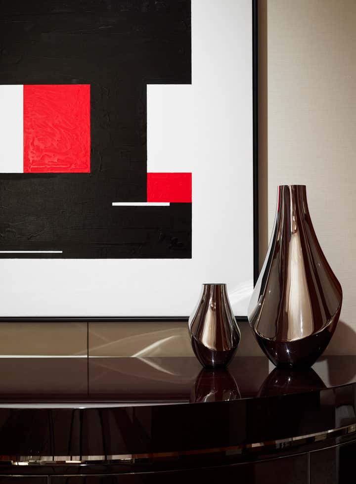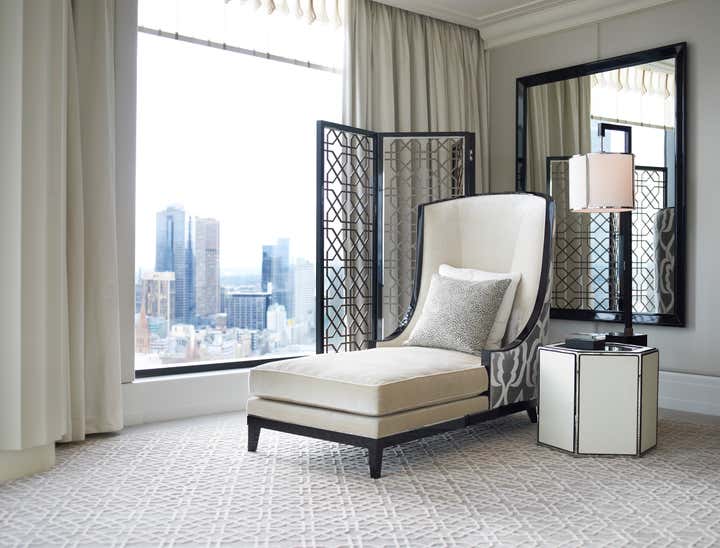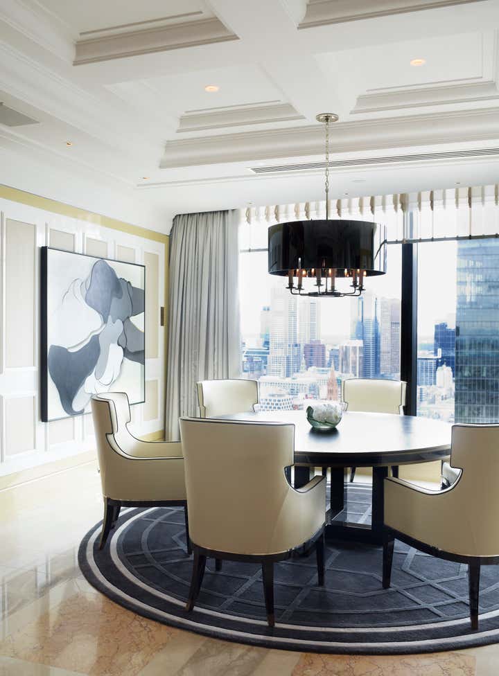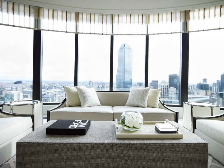 The Crown Towers Villa, Melbourne, is a new level in crafted, luxurious hospitality. The vast floor area of 1400 sq metres floats above the city, occupying the top floor of Australia’s only 6-star hotel. With a contemporary materiality woven together with traditional references the interior is entirely bespoke from the smallest detail to the largest gesture.
