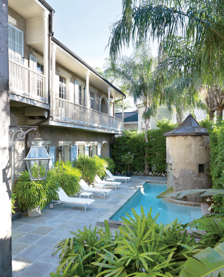 Lee Ledbetter & Associates was hired by a repeat client to renovate an early 19th Century home on Esplanade Avenue – the French Quarter’s downriver border. The architects returned the home, which had been divided up into apartments, to its original plan while enlarging openings between existing parlors and a spacious side entry hall. Cased openings, crown moldings and baseboards were carefully matched to remnants found in the building. The design took advantage of very high ceilings and windows on adjacent facades, and the result is an open plan with public spaces downstairs and the master suite and guest rooms upstairs.