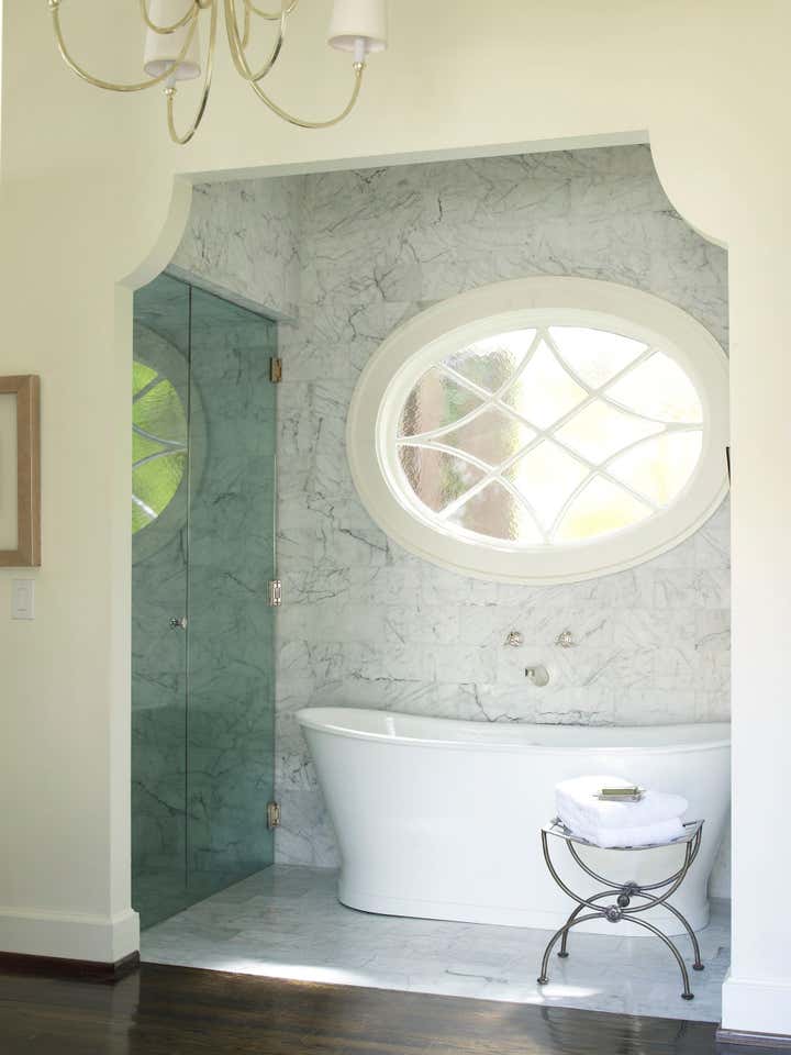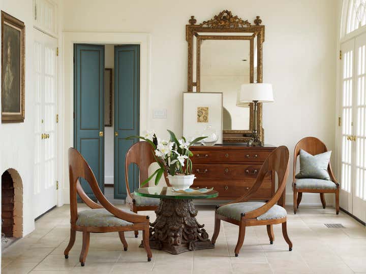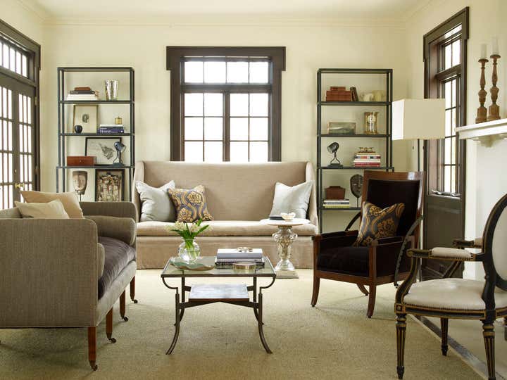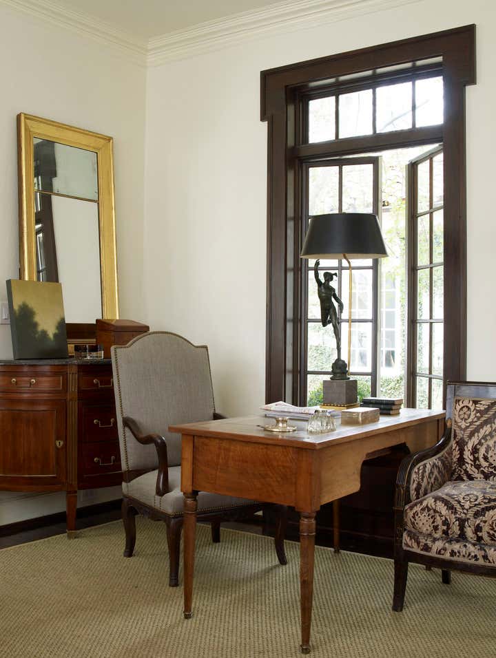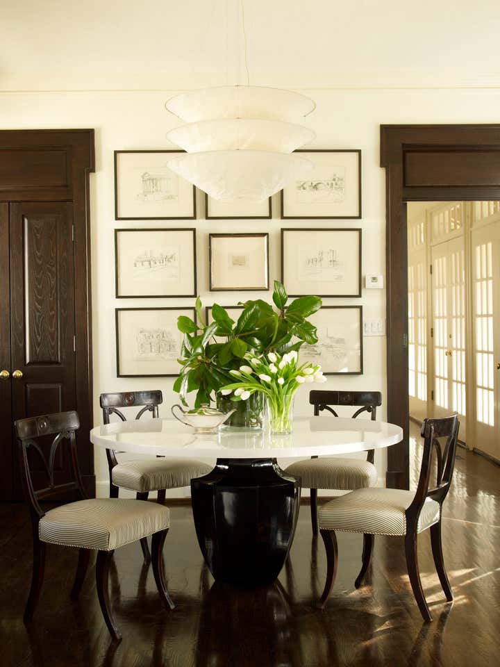 Neoclassical elements and a neutral palette set the stage for this sophisticated, serene home.