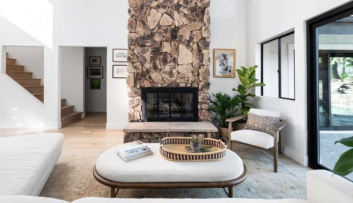 This repeat client sought Imparfait Design Studio's Creative Director, Rebekah Zaveloff, when her husband spotted a home in Encinitas that he loved . . . even though they had no official plans to move from Chicago back to California. Was he crazy? Rebekah thought not, and Imparfait was retained to completely overhaul the inside main spaces and exterior of the three-bedroom home. All new wide plank white oak flooring and white paint for the house's interior and exterior created a cohesive palette. Black exterior trim and window casings created contrast. A bright new kitchen, new furnishings, a partial remodel of three bathrooms, and all-new lighting completed the interior design. Imparfait also transformed the enormous garage to gain two offices. Patio doors were added to the offices, the family room and the casita to provide easy flow between the indoor spaces and the outdoor lounge area and pool. With their kids in college, the main house with its guest casita is now the perfect serene sanctuary that captures the laid-back California lifestyle.