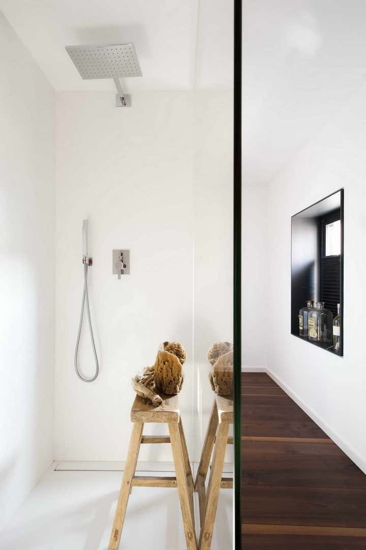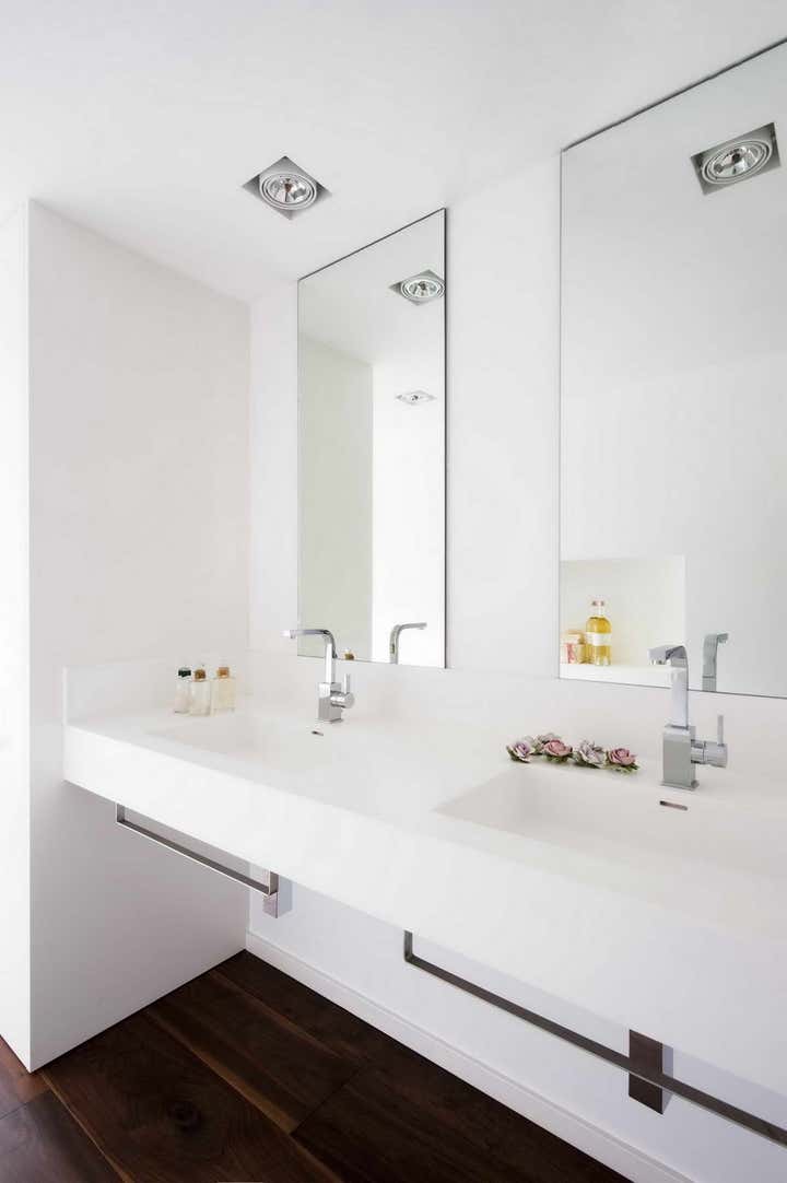 The main house consists of three residential buildings, each three stories high, which have been joined together. The two buildings on the extremities have been completely excavated,resulting in the opening up the ceiling heights to a majestic forty feet. The public spaces of the residence are located on the ground floor, with the living room and kitchen in the western-most part of the house. The dining room and a cozy sitting nook in the center house and a dedicated entrance in the easternmost house. The center house also holds the master bedroom suite on the first floor, above which, on the second floor, is the first guest suite.