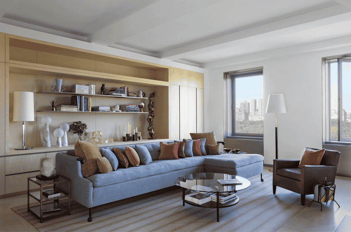 The result is a spacious living room with picture frame windows overlooking Central Park, connecting kitchen, dining and formal reception room, creating a loft-like open atmosphere. The private master suite and dressing room are separated to the East side of the apartment by a corridor also servicing the three guest bedrooms, to give privacy between entertaining areas and bedrooms. There are many bespoke furniture pieces designed by Bryan O’Sullivan Studio, along with other pieces from Galleries and Antique dealers in Manhattan. Bryan O’Sullivan Studio worked closely with top art galleries in New York to curate the art within the space.