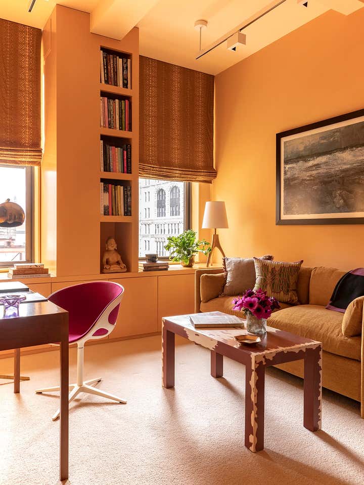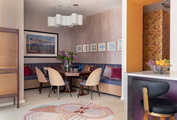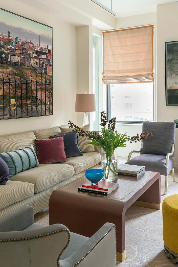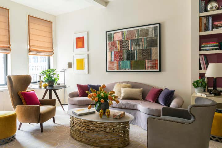 The renovation and decoration of a loft apartment near Madison Square Park in New York. This pied-a-terre is an intentional contrast to the owner’s grand traditional home in another state. While the furniture and atmosphere are contemporary, the palette and disposition of furniture and artwork are rich and layered. Custom elements such as the hand-blocked Art Deco wallpaper and painted canvas floor-cloth are current takes on historic techniques, while other elements are decidedly modern.
