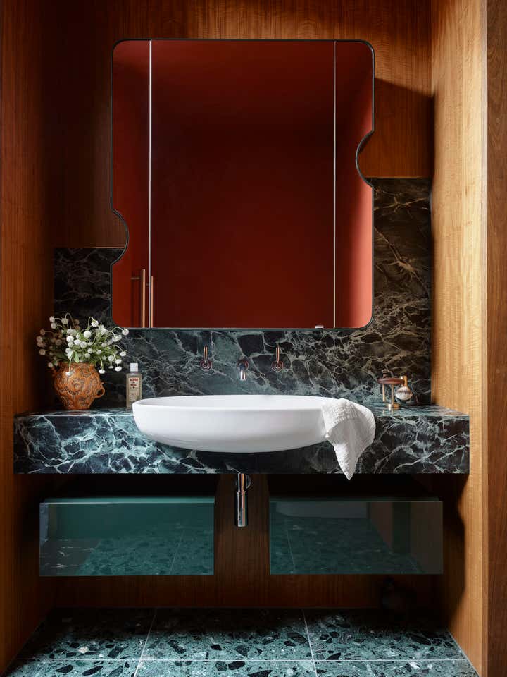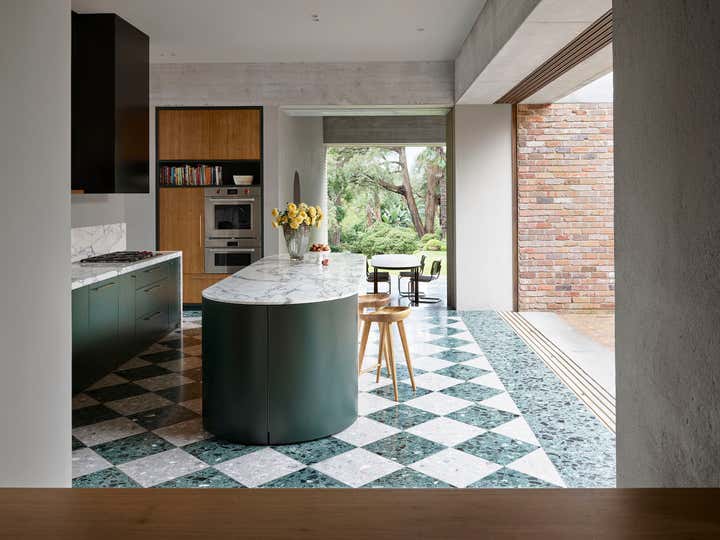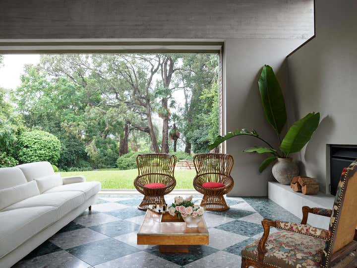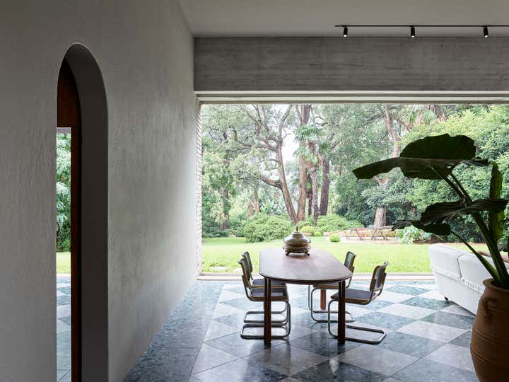Natural materials, bright light-filled spaces and an openness to the great outdoors will always be a beloved signature of Australian interiors. When conceiving the interiors of the Garden House, we were drawn to the concepts of timelessness, tranquility and escape. Garden House embodies the client’s combined passions for art, gardens, and colour. Architect, Polly Harbison, conceived a single storey addition that would connect the home to the garden by way of spatial manipulation. “A sequence of increasing scales create this sort of warped perspective effect to really draw the garden into the house. The floors are stepped down to the garden level and culminate in a four- metre-high space, increasing in width as well as height." The garden has a grove of trees in the middle and a heady mix of flowers in every shape and colour. The clients wanted their house to have a similar combination of rich colours and textures, yet with the same feeling of calm. The unusually long garden was everything to this family, and they wanted to feel as if they were living in it. So was born the Garden Room, a space more suited to a Luca Guadagnino film set than here among the battle-axe blocks of Sydney’s North Shore.