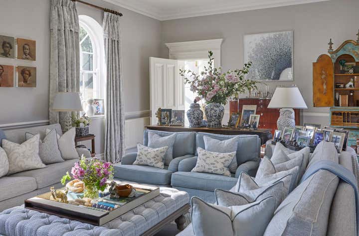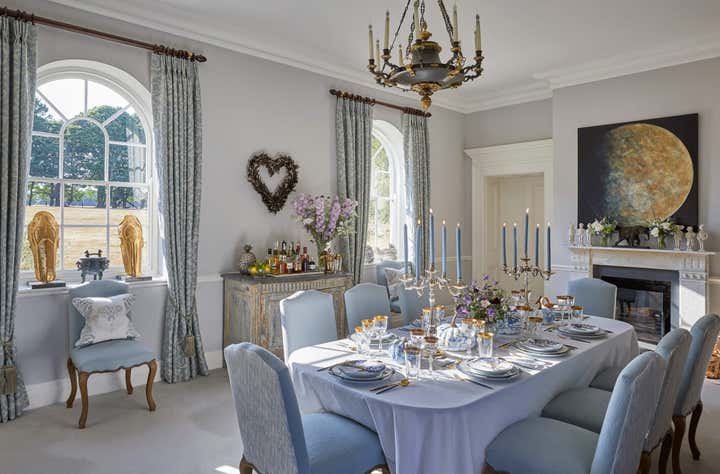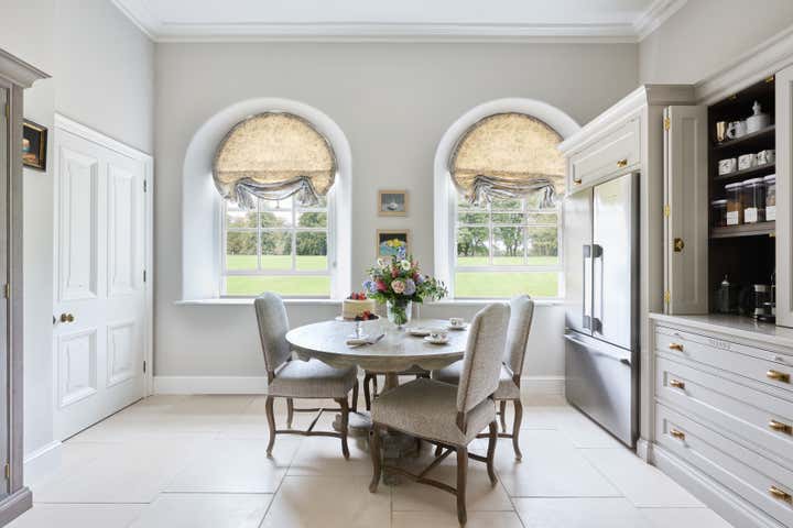 Surrounded by nature and trees covered in spring blossom, the beautifully refurbished, honey-coloured stone, Georgian Coach House is lovingly furnished with objects from Katharine’s travels. A serene and beautiful backdrop to family life, the country house interior design creates a refined yet eclectic aesthetic, full of thoughtful and personal details. Large arched windows fill every room with natural light and a soft, tonal scheme in gentle colours creates a graceful and timelessly elegant interior.