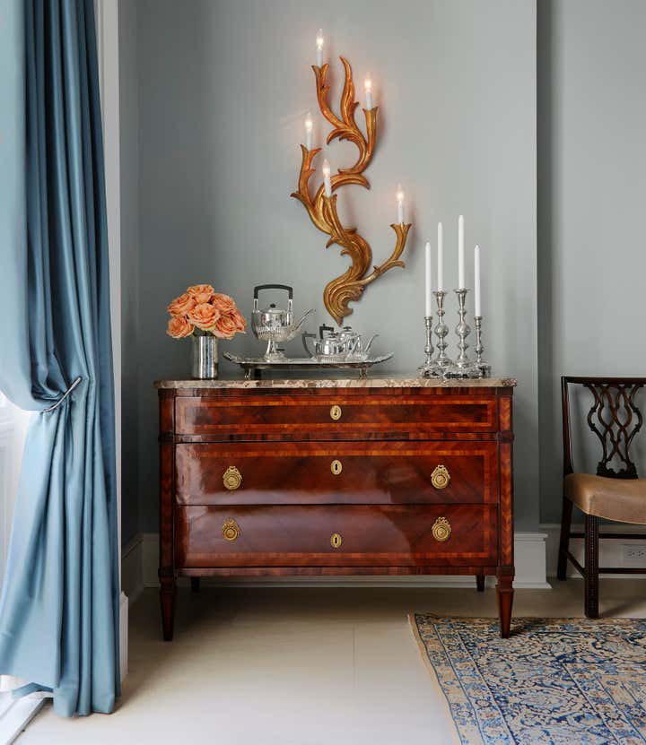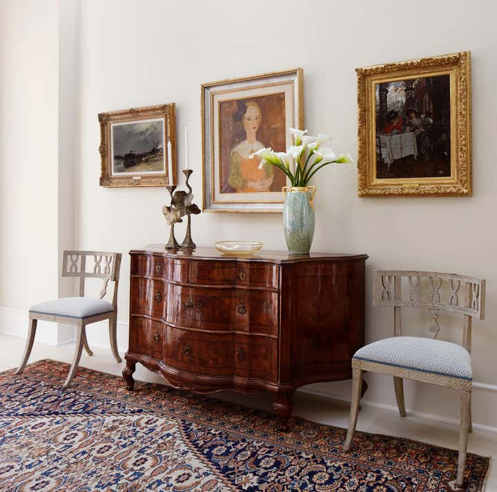 A contemporary home on the shore of Lake Michigan houses a fine collection of Continental antiques and contemporary art.