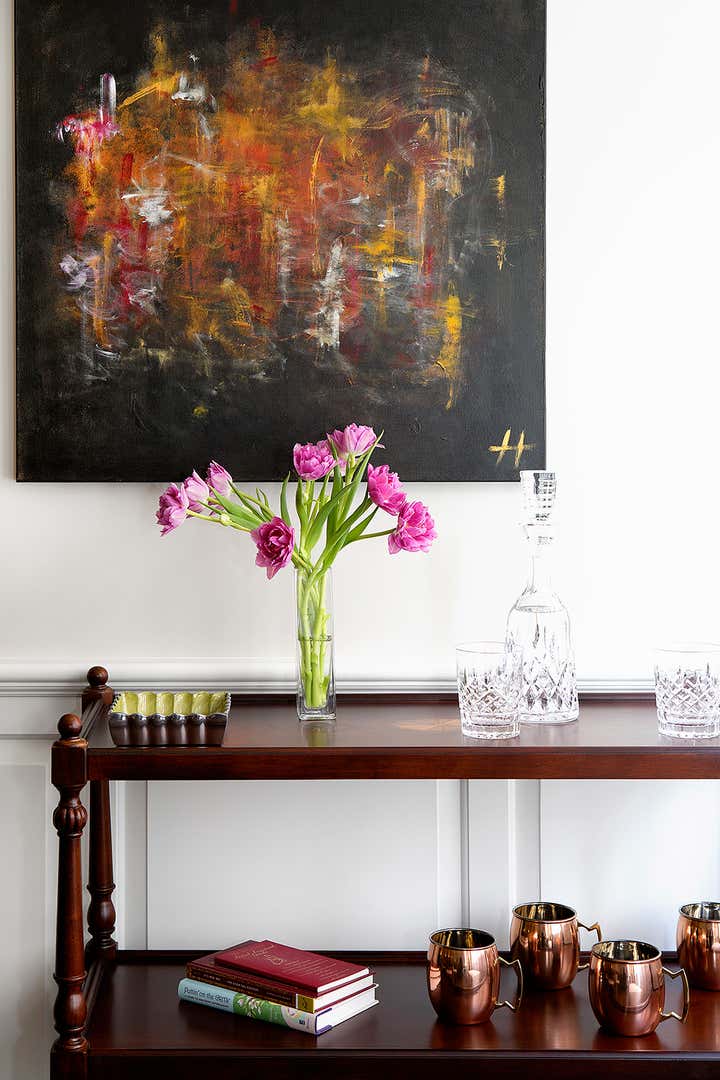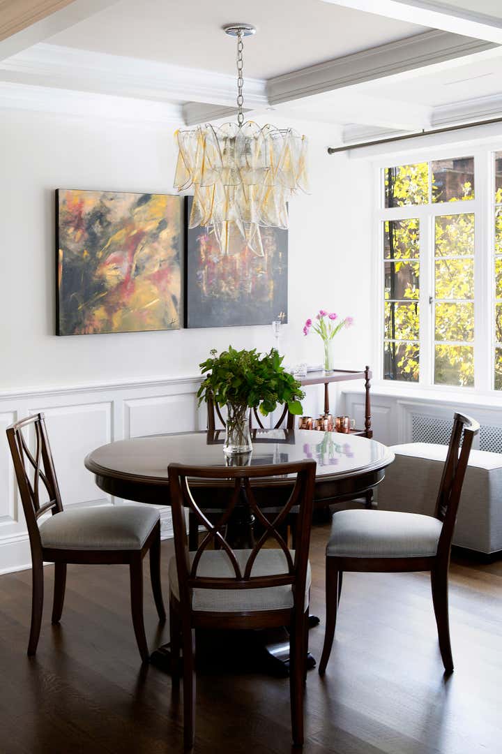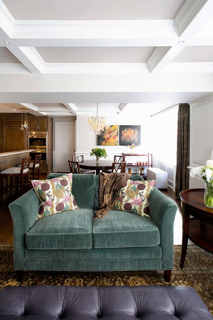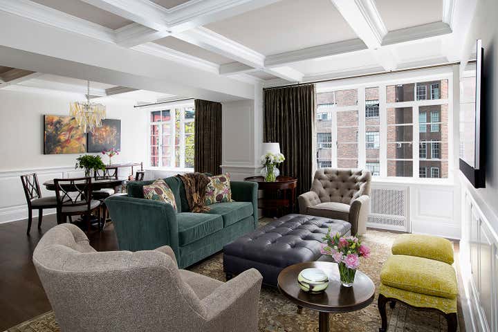 Traditionally furnished apartment kept fresh with unexpected use of color and texture. This project was a combination and gut renovation of 2 pre-war apartments.