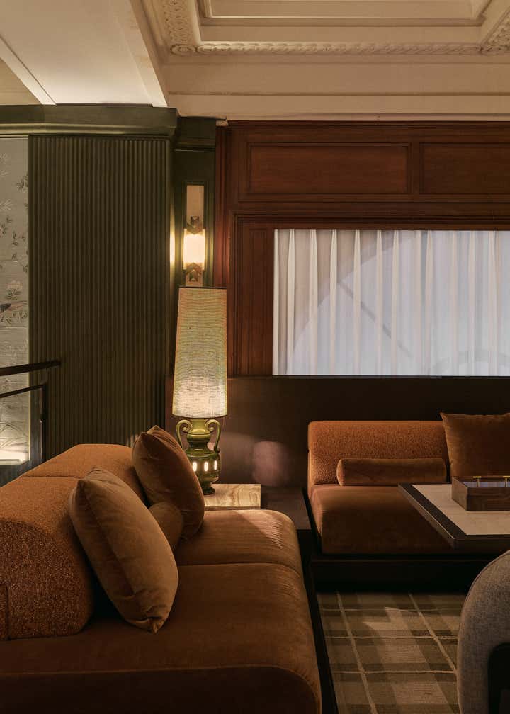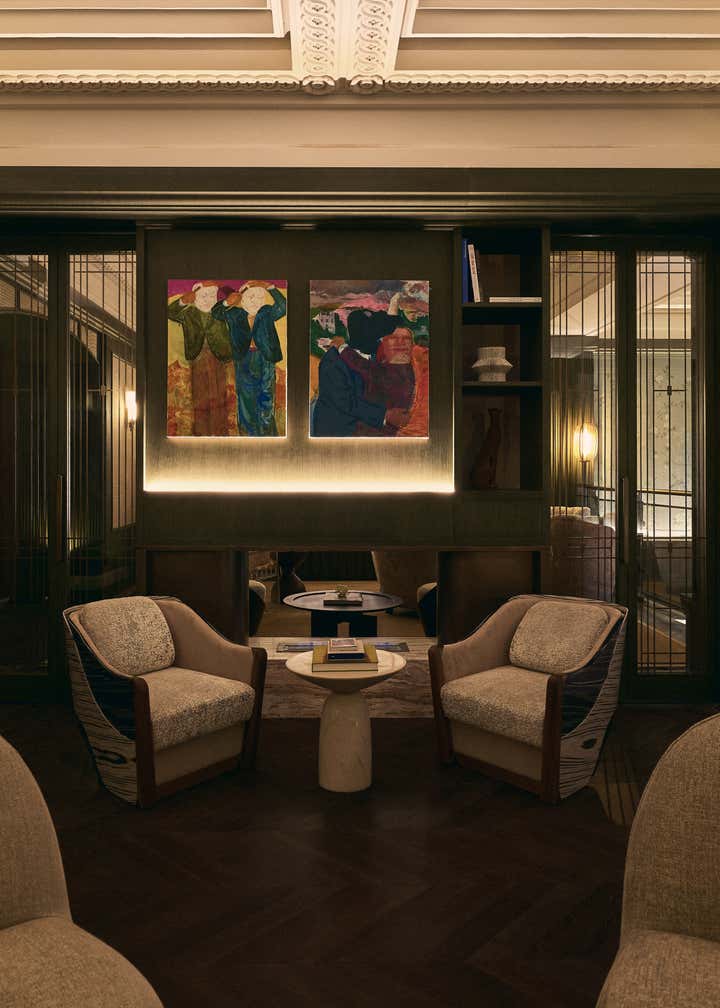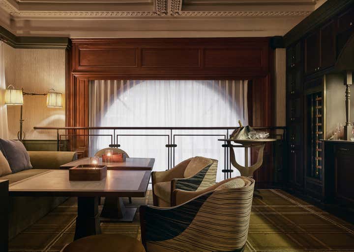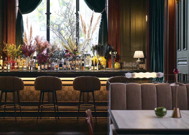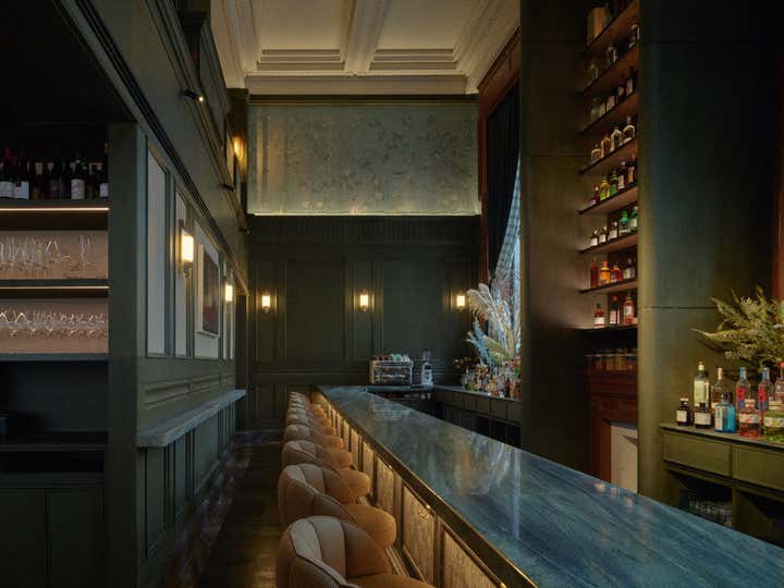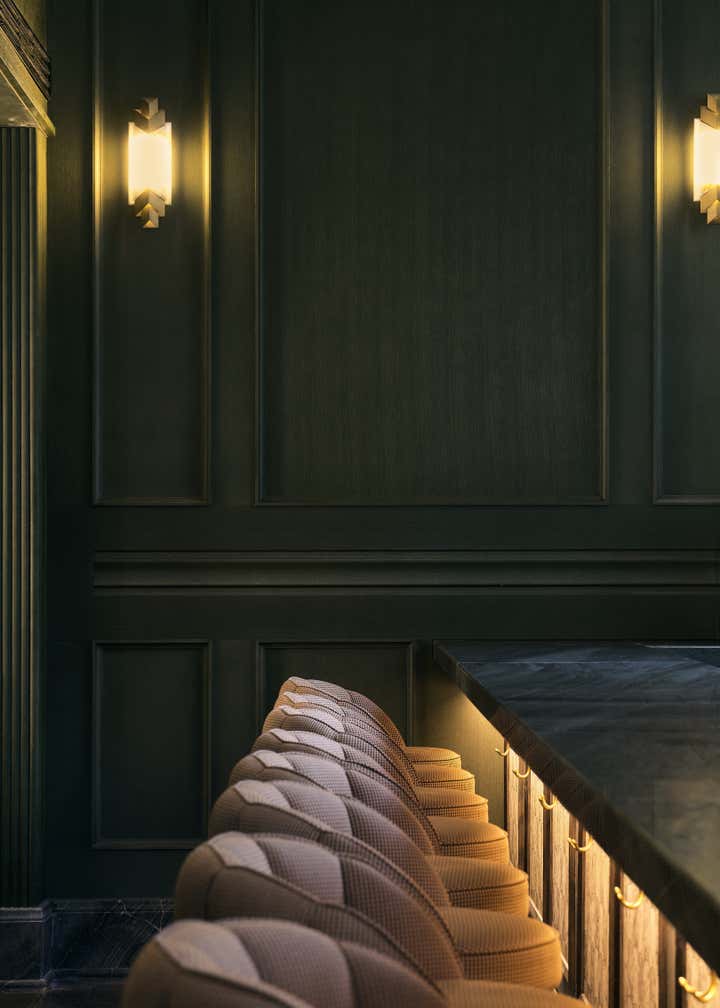 Standing in front of the restored Brunner Mond Building, the ethereal and distant vision of transitioning away from the abstract became concrete. This is our stage, where a prologue to the new story of Grand Banks is presented. In 1921, Brunner Mond, a foreign bank engaged in the soap business, bought the land on the south side intersection of Sichuan, and Fuzhou Road. This land later became the headquarters of Brunner Mond in China. The Building was created in a neoclassical style, with characteristic three horizontal columns in its facade. These columns along with the bronze cast iron gate, imitation stone facade, French windows, and lost sculpture of Atlanta, all pay homage to the golden age of Shanghai, when East encountered West. Since then, the former foreign bank has changed owners and undergone many rounds of repair and renovation giving us today’s Brunner Building, completed in 2019. By continually referencing the building’s archives and images of different historical periods, the two-year project aimed to revitalize the historical building, enhancing its overall appearance through repairing and restoring damaged carvings in accordance with the heritage regulations of minimum intervention, reversibility and integrity. “The greatest charm of the architectural complex in the Bund”, Chris Shao shares in his own words, “is that alongside the historical weights they possessed, these old buildings are also waiting for the inscription of contemporary souls and meanings”. In the old neighborhood, where the atmosphere of metropolis intertwines with civil life, and history meets humanistic spirits, Grand Banks is born. Through design, the tale of prosperity, gold, and jadeite is spoken. Vintage blackish-green and copper tones are used for the bar, alongside meticulously preserved wooden structures and veneers. A natural and light ambiance is created through stone carvings on the ceiling, Chinoiserie-style wallpapers, fine textured fabrics, and use of silver cutlery. Through maintaining a sense of ritual as you relax yourself, we hope Grand Banks will bring you back to the splendid past of golden-age Shanghai. As a hub for sharing, meeting and relaxing in the modern city, Grand Banks welcomes the young and bold future dreamers from all walks of life to come, nourish and indulge their taste buds, and expand their minds to beyond.