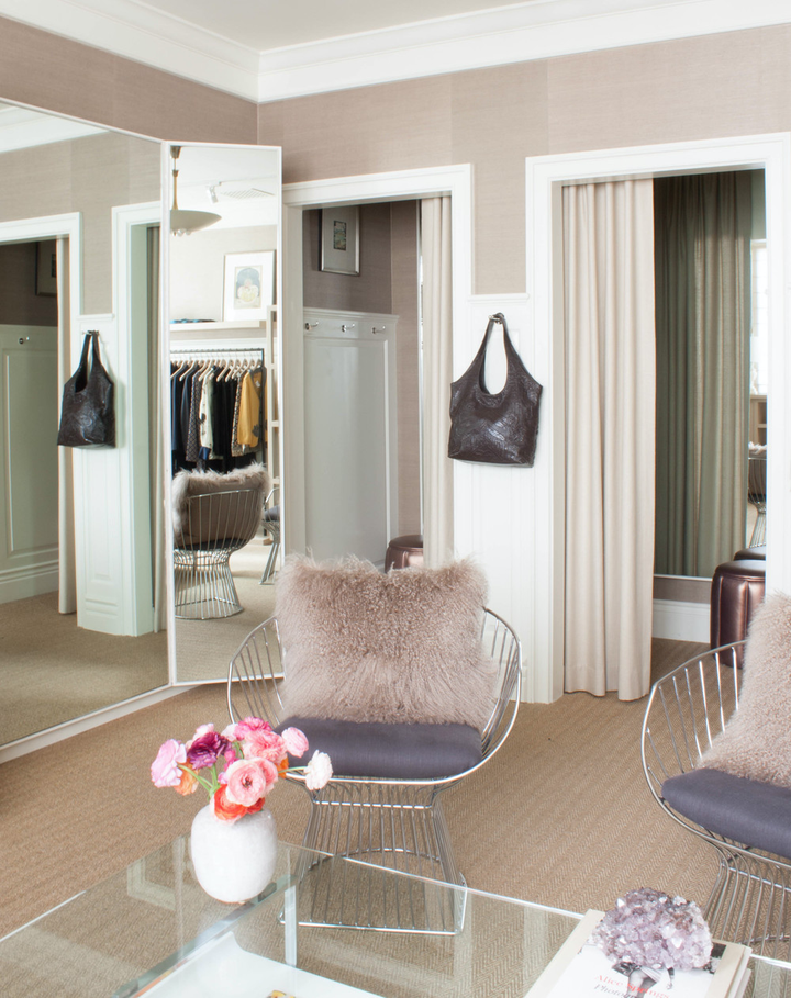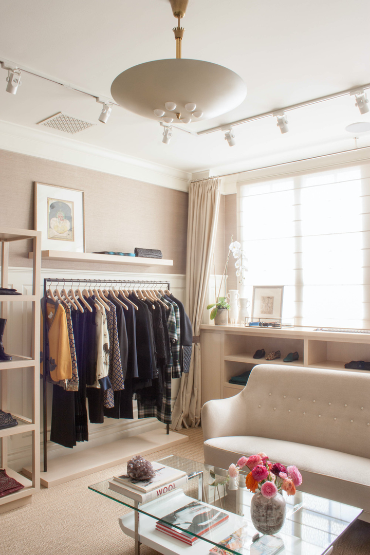 This women's clothing store was located in the rear of a 1940s Gerard Colcord-designed building in downtown Beverly Hills. The small apartment-like space was gutted and fitted with custom millwork, panelling and moulding.