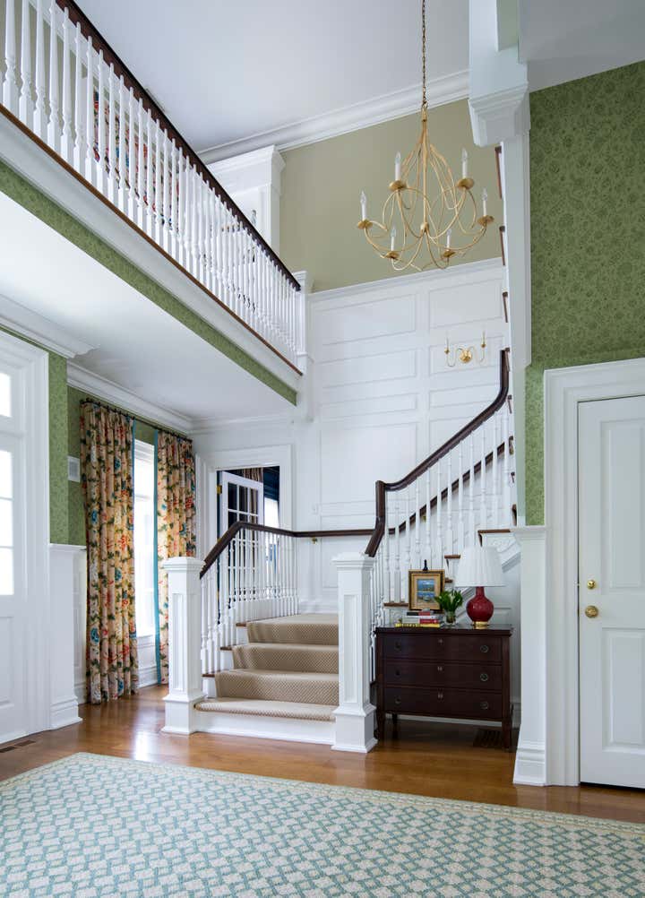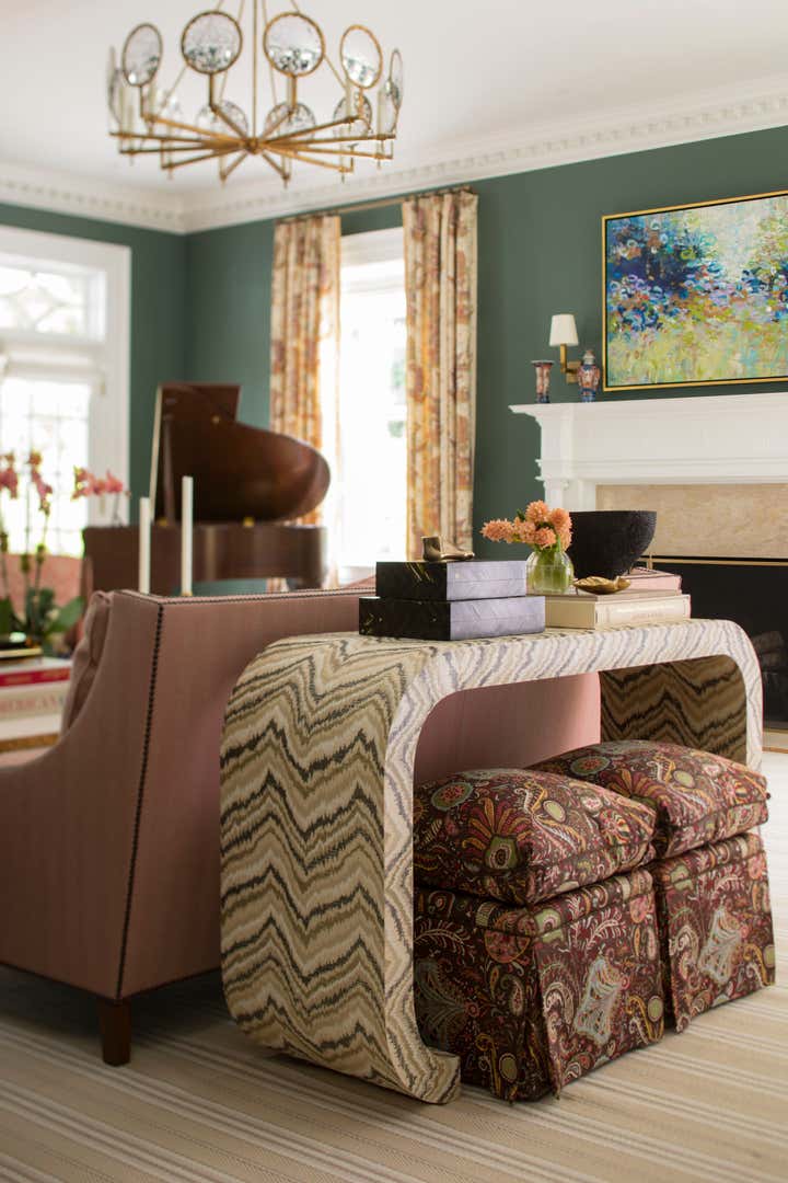 This 5-bedroom, 20-year-old, Georgian-style home needed a fresh chapter and KWI was hired to lead the decoration of the entire project, as well as the renovation of the Master Suite. Designed by Judith Larson, a well-established New Canaan based architect, the house had great bones. We have collaborated with “Judy” on prior (and subsequent) projects and love working with her and the team. The direction was to create a house that was equal parts family-friendly, and always ready to entertain. Luckily, both we and the owners are big fans of bold, vibrant colors and a free mix of pattern and styles was quickly hit upon. A playful but nuanced mix of furnishings and décor using high and low, custom and some off-the-rack, new and antique, works harmoniously to create an energetic flow throughout the home. It’s a very cheerful home, and one we’re excited to present.