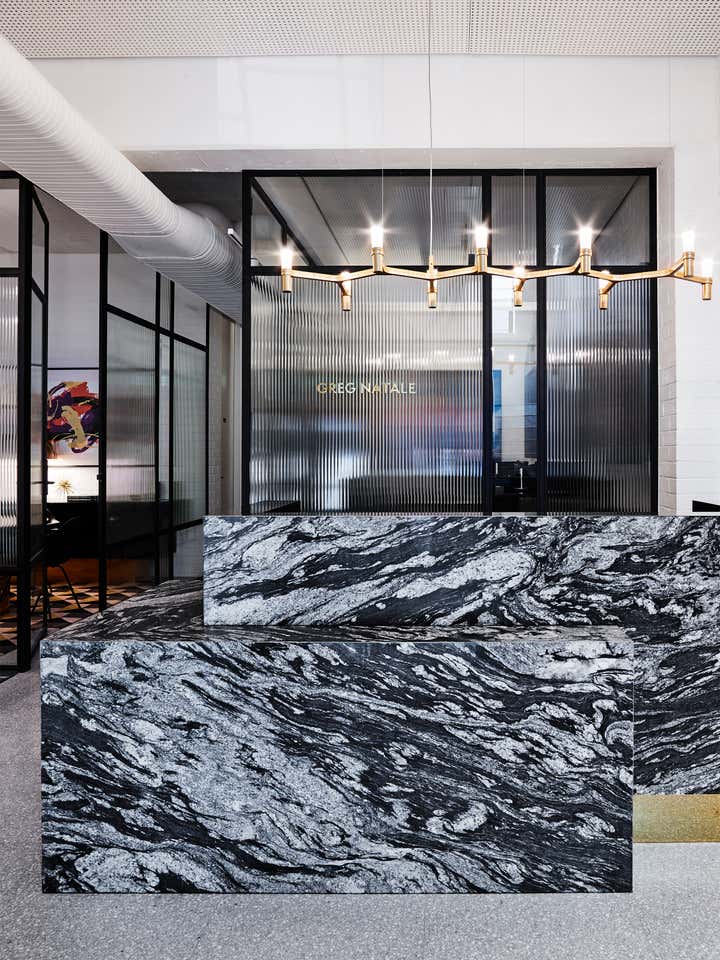 Embracing the complex combination of roles of architect, builder, interior designer and client, Greg Natale embarked on the detailed renovation of a building in Sydney’s Surry Hills for the practice's brand new headquarters. The existing 1960's building was stripped to form a generous building of four split levels that comprise an entrance and board room, reception area, meeting rooms, kitchen, staff room, bathroom, show room, design studio, administration offices, samples library, private office, showroom and roof terrace.