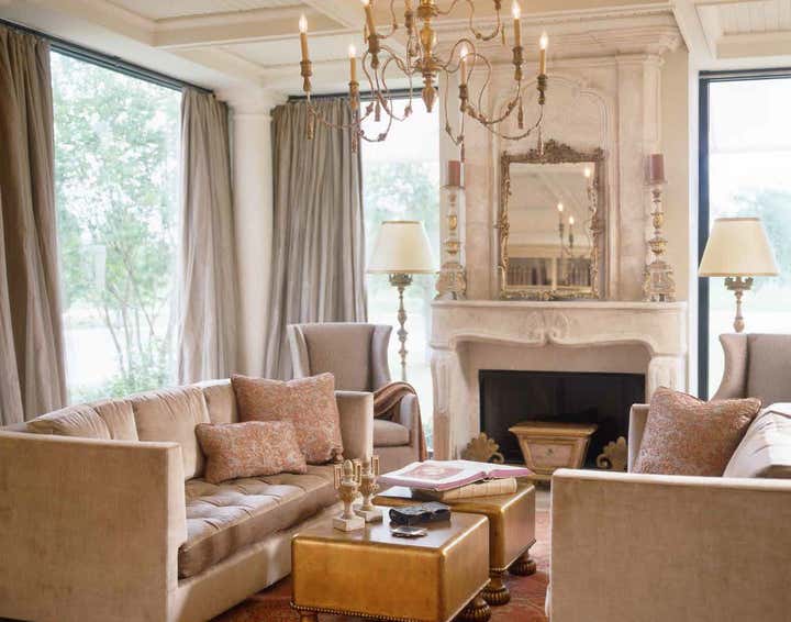 This home is filled with ecclesiastical pieces that offer a generous scale that's a natural fit for larger modern houses, with patinas that bring the suggestion of provenance to new construction, as they do here. These rare pieces, while tricky to make relevant to modern life, add glamorous elements to the house's sea of neutrals.