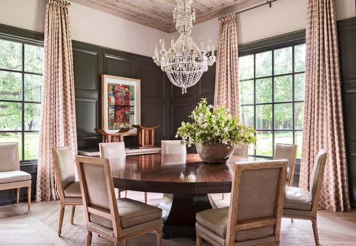 Inspired by Sir Edwin Lutyens, but given a masterful modern twist by architect Paul Lamb, this was an architect/designer collaboration from "ground up" to completion. The eclectic furnishings include everything from an 18th century Swedish chandelier to Marie Christophe's contemporary beaded bee sconces to a gilded jute mirror by Christian Astuguevieille. Stellar build by The Southampton Group, Houston, Texas.