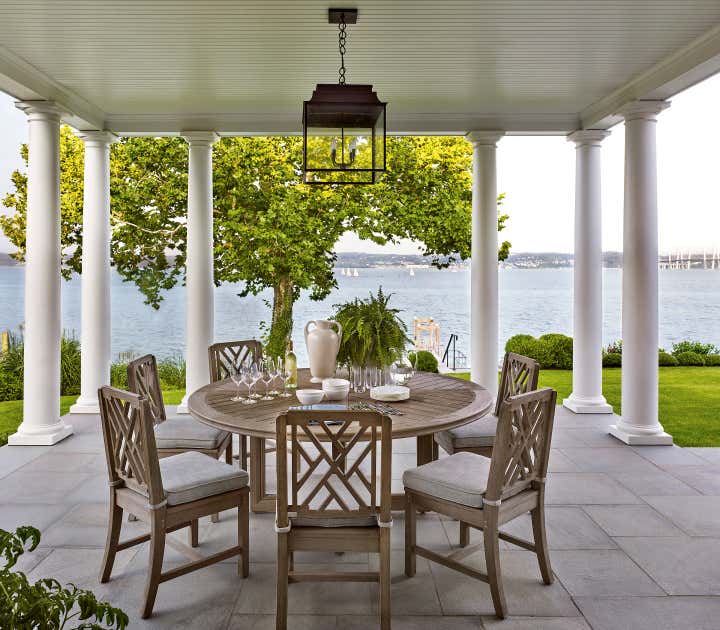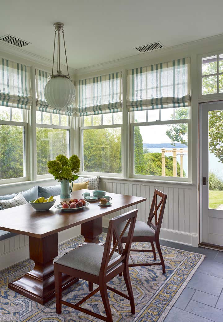 Established clients of Glenn Gissler Design were looking for a weekend property when we found a newly-built architect-designed shingle-style Colonial Revival home on the Hudson River. The rooms were gracious and well-detailed yet not ostentatious, with remarkable river views, presenting the perfect backdrop for a restrained mix of contemporary, vintage, and antique furnishings.