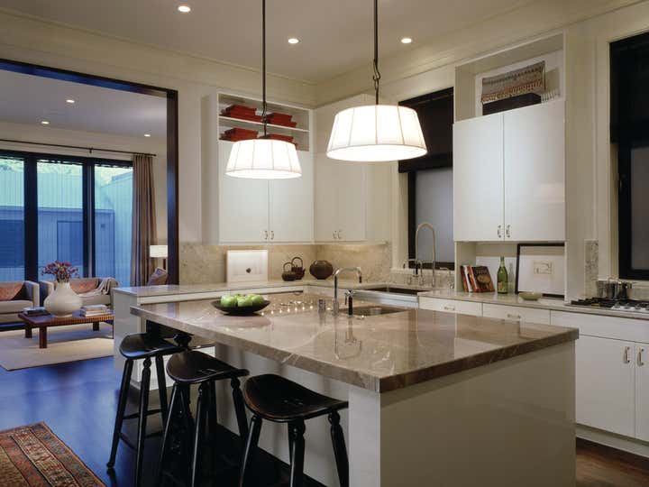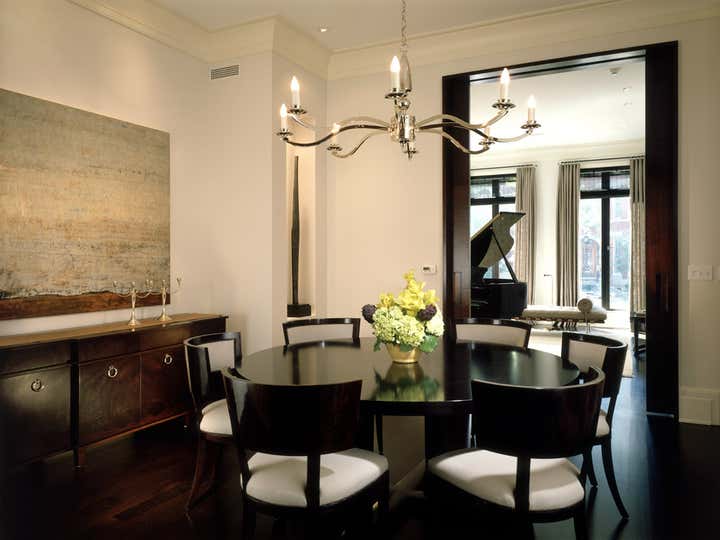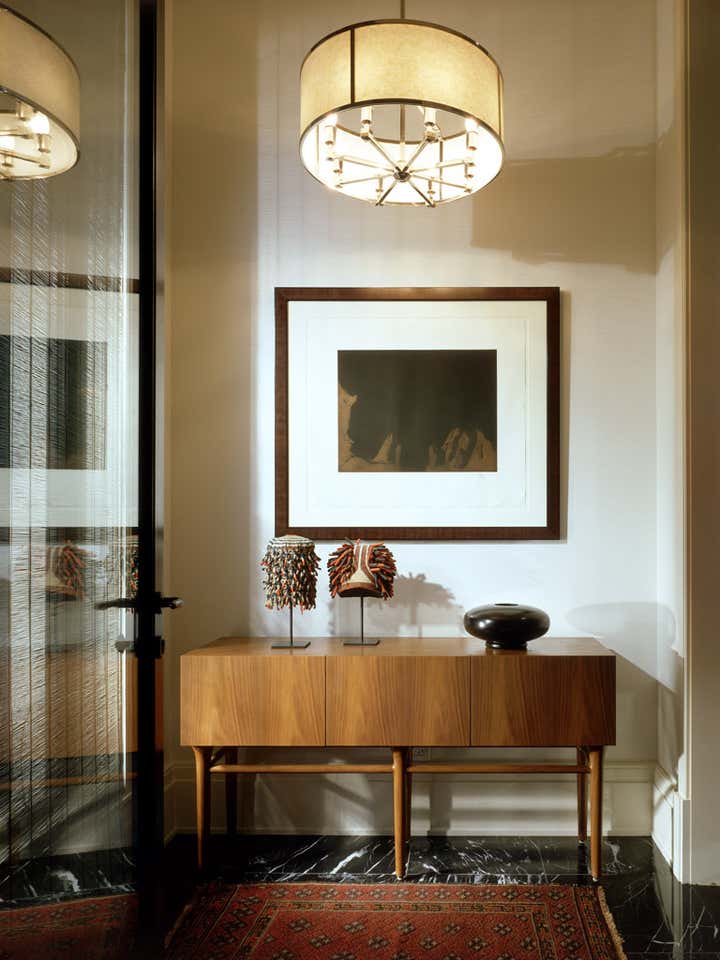 Black and white and calm all over, this single-family residence – home to teens as well as adults – exhibits nuanced interiors void of color, yet energized by contrast. A streamlined architectural envelope exaggerates the play between light and dark, allowing form and silhouette to ebb and flow. Stately architectural enhancements, including custom-crafted crown moldings and massive mahogany-stained pocket doors, frame a lifetime’s collection of important art and exquisite furniture. Exciting new furnishings, objects, and accessories inject textural interest that enlivens the stark color palette and creates visual impact – quietly, of course.