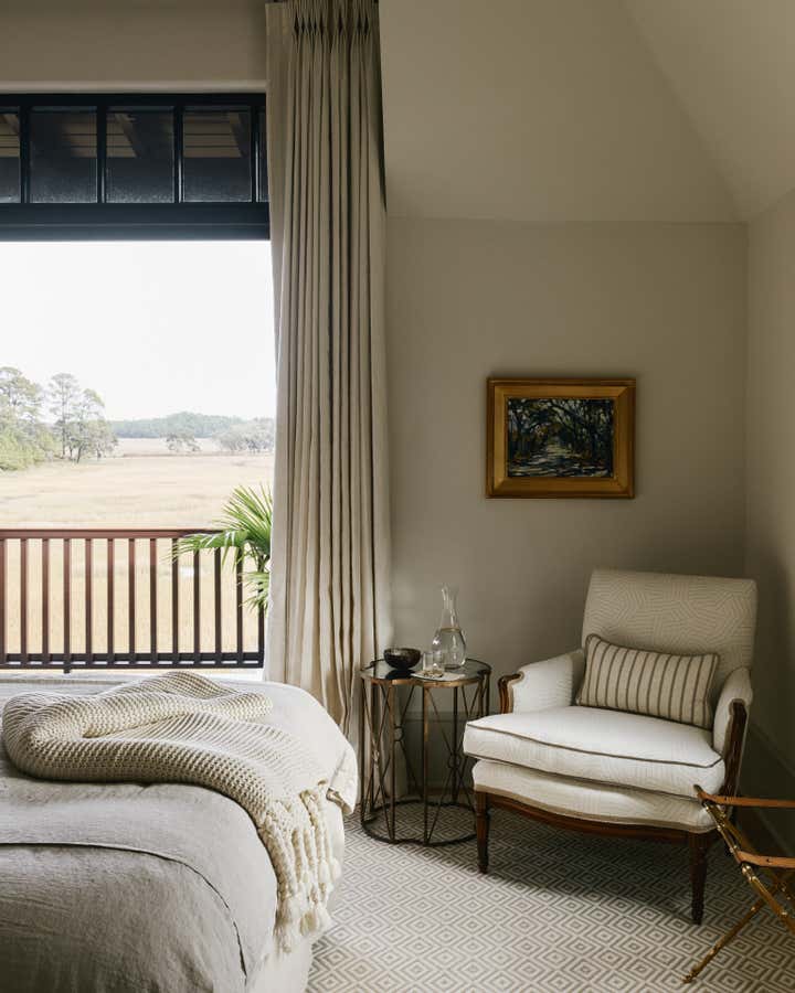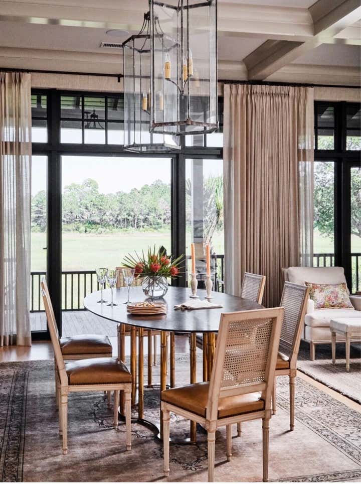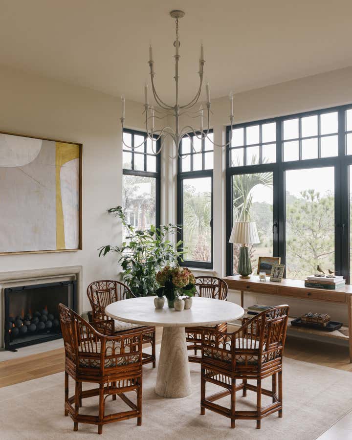 This coastal home's design reflects the nature and water views of the home. The home owner wanted each room to be designed in neutrals. Cool colors were mixed with rattan, bamboo, and textured wall coverings to add dimension and character to each space.