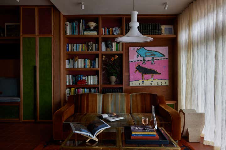Modern updates include a new primary suite and studio, stainless steel kitchen counters, and a cherry-hued stone backsplash. Blending vibrant art, vintage furnishings, and tactile contrasts, Stelly Selway transforms Jersey Road into an evolving portrait of family and creativity—where memory and material craft intertwine to tell an intimate story of home.