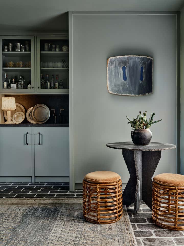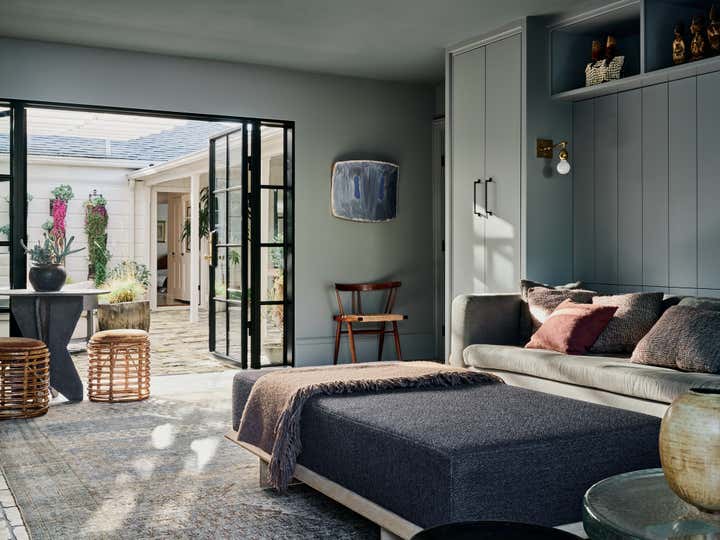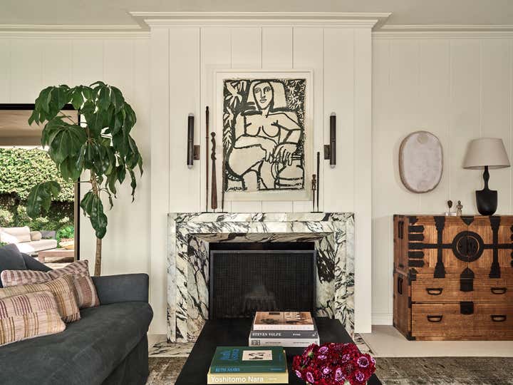 Otis Jones' artwork, layered textiles, and Pre-Columbian artifacts collected over decades redefine cottagecore in this 1930s Laguna Beach house.