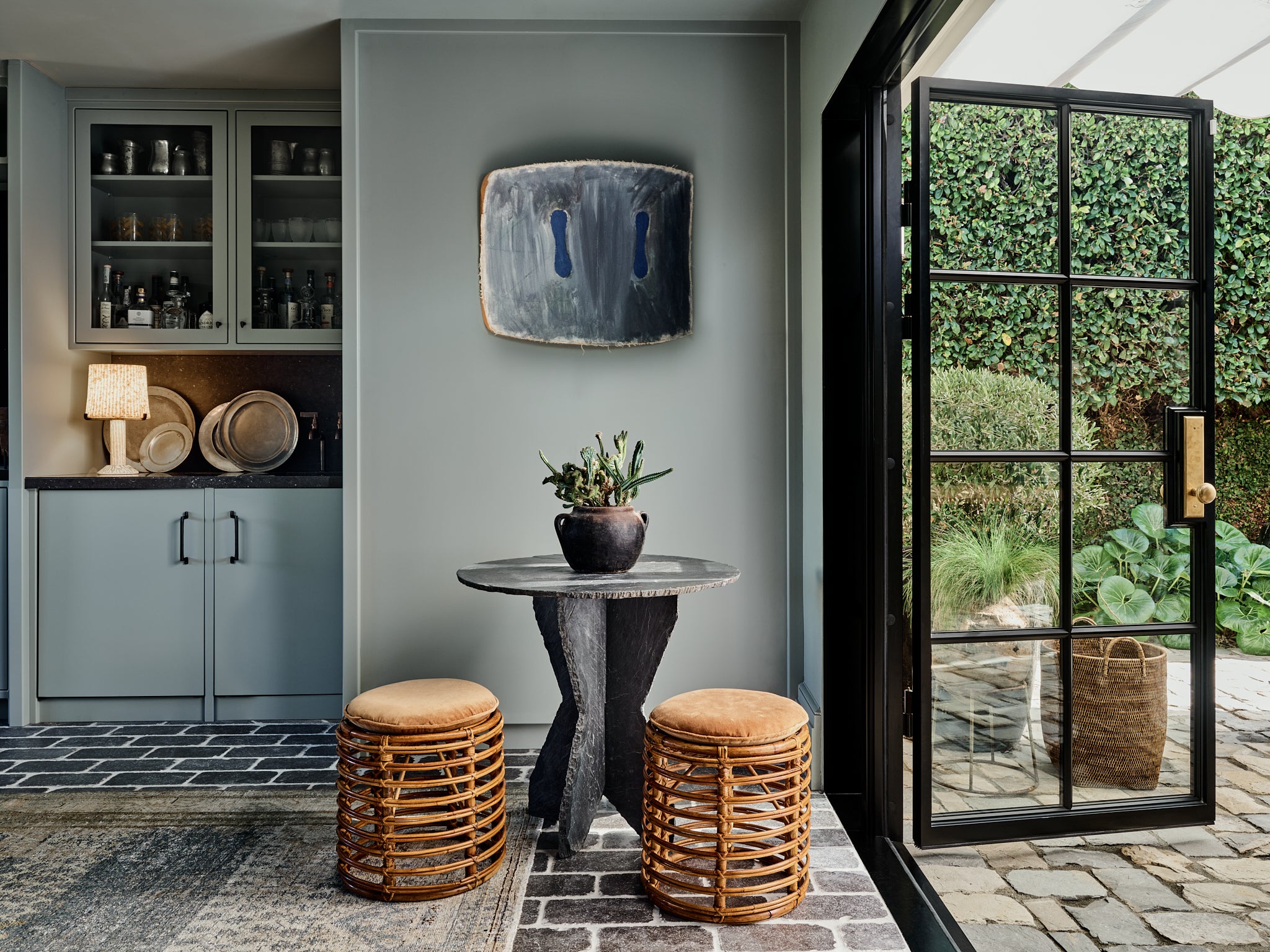 Otis Jones' artwork, layered textiles, and Pre-Columbian artifacts collected over decades redefine cottagecore in this 1930s Laguna Beach house.
