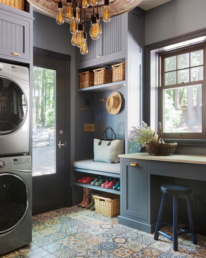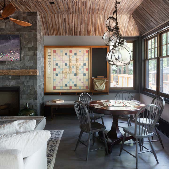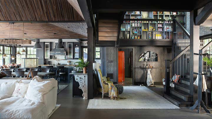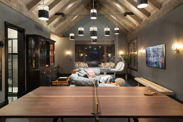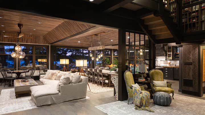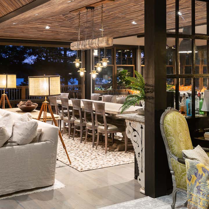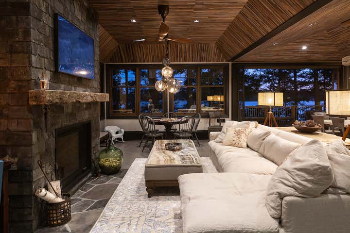 This custom built lake house and interiors was designed by Paul Hardy in 2018. The clients wanted a legacy build for their family of 5 children, as well as a partial retirement property that is used 1/3 of the year to entertain extended family and friends. The furnishings were a combination of antiques from dealers on 1stdibs, as well as pieces from the owner's private collection that Hardy refurbished for them during the design process. This 5000 sq ft home sits on the lake in Muskoka Ontario. It includes 2500 square feet of outdoor decks as well as a 1500 sq ft docks and custom boat port. This was all constructed in a staggering 10months with 65 workers at one given time.