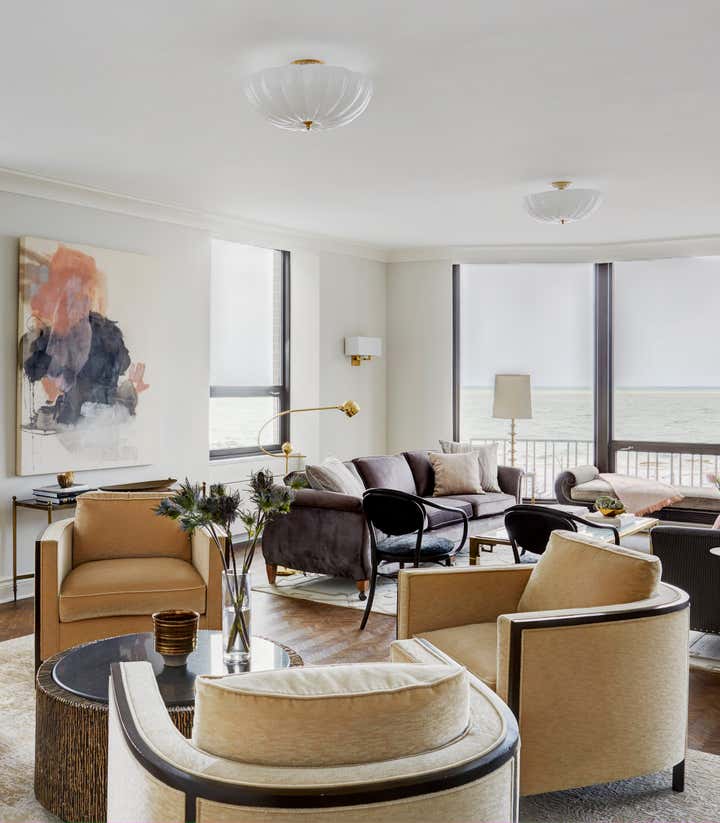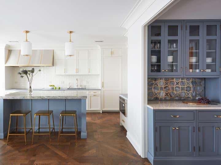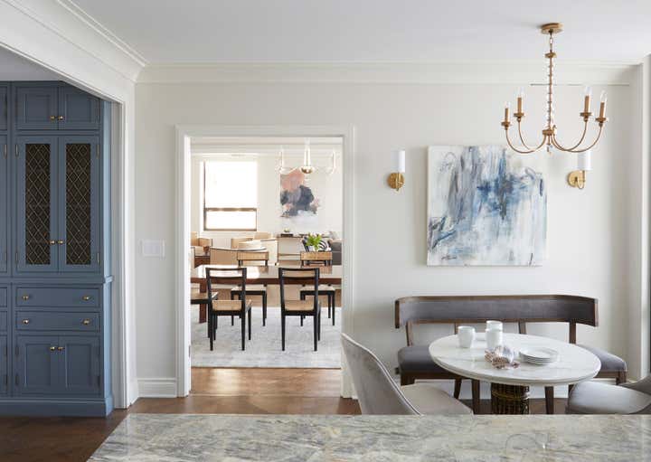 This was an extensive gut renovation of a vintage apartment overlooking Chicago’s Michigan Avenue with stunning views of the lake. Everything was taken down to the concrete. The bedrooms, hallways and entrances were reconfigured to incorporate the dated floor plan with a separate bedroom and bathroom entrance off the foyer to be accessible to the rest of the living space. All new hvac systems, electrical, plumbing, windows and millwork were also part of the scope, in addition the bathrooms, kitchen and interior design throughout. The original breakfast room and kitchen were both closed off to the rest of the apartment, with a tile floor that was 4” above the original parquet herringbone floors due to sound buffering requirements. By refinishing and repairing the original floors, we were able to use a gorgeous new parquet pattern in the kitchen with minimal height change due to amazing new materials available in the sound abatement industry. It’s hard to believe what this apartment looked like before, and we’re so happy that the original floors could be salvaged to maintain the character that’s often lost during gut renovations.