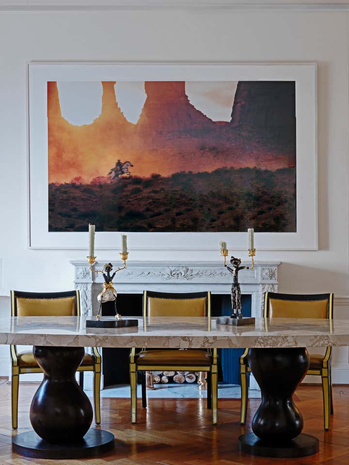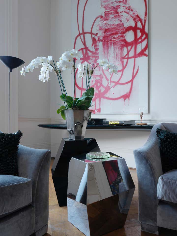 A stunning Georgian apartment in the heart of London. The space is a Grade 1 Listed property with stunning proportions but reveals the owners incredible art collection featuring pieces by Zaha Hadid, Emilio Terry, Grayson Perry and art works by Richard Prince and Paul McCarthy. Entertaining space is a major feature of the property with large dining room and drawing room with large comfortable study with dressing areas, bedroom and ensuite bathroom. The designer has combined classical features with a contemporary art collection to create a home that is elegant yet warm.