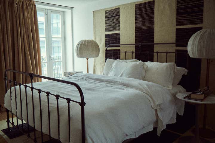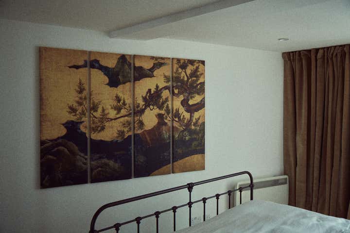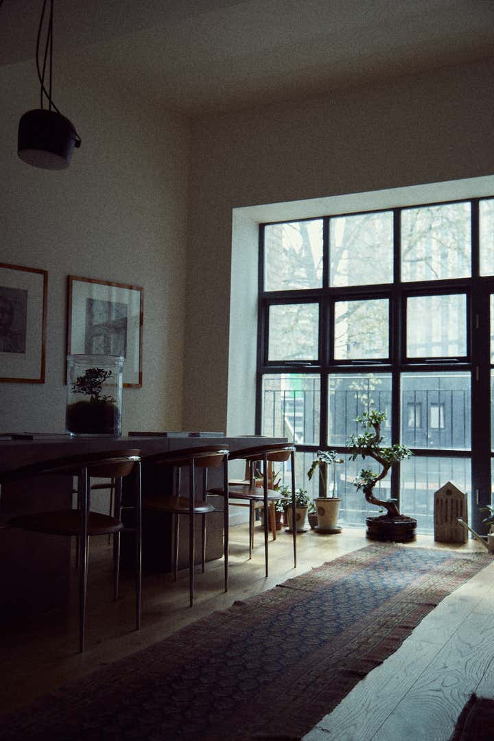 A bachelor's home in a former factory; his global upbringing in Russia, Asia, US and UK largely influenced the mood of the space. Every style and period is seen with 18 c. furniture, 19 c textiles and contemporary lighting and art working seamlessly together throughout the space.