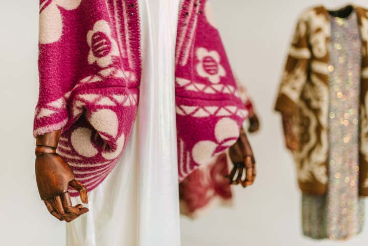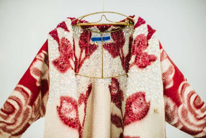 All of the pieces are handmade in our atelier in Tallinn, working together with highly skilled artisans. All the silk details are separately hand-dyed according to the colour of each blanket, and all the seams hand-treated. It takes about a week to prepare a coat. Each coat is then labeled with a certificate stating the origin, sequence number, and the names of the people who have been personally involved in the making of the piece. All this special dedication makes the coats true wearable novelty pieces.
