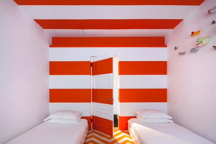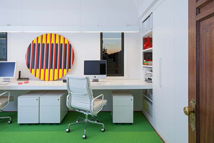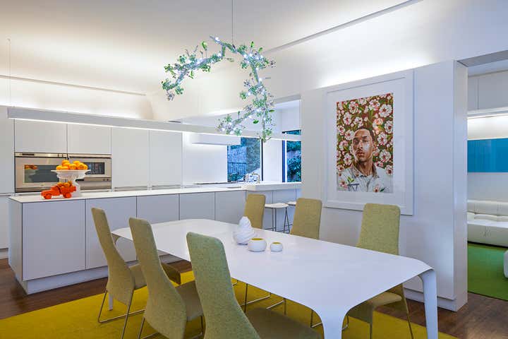 In a very close collaboration with owner and architect Chet Callahan's vision, Ghislaine Viñas came on board to infuse high energy into this young family's home. The clean perfection in architectural detailing lent itself to designing with abandon, cumulating in something quirky and unique.