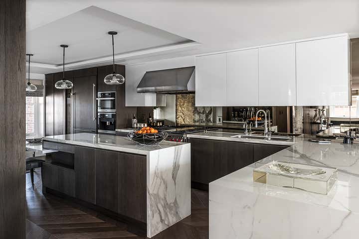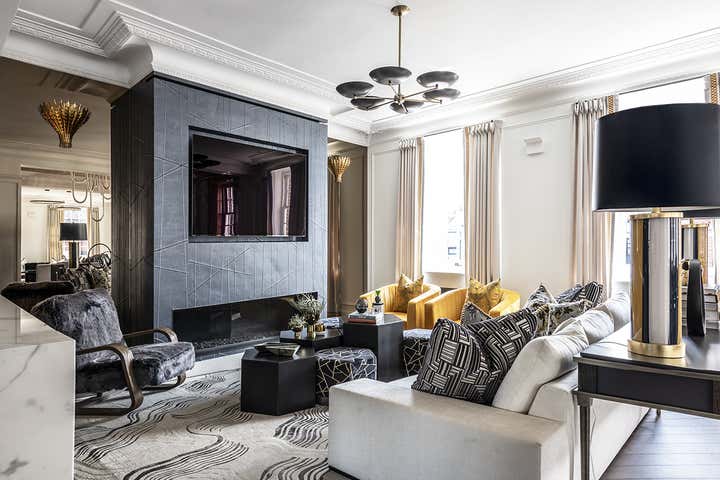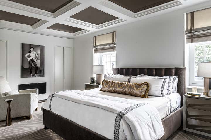 Italian influences were used in subtle ways throughout; with plenty of clean lines, plush fabrics, warm tones, and custom pieces. The homeowners split their time between their New York and Boston residences, thus, a sophisticated and elegant approach was used with luxe fabrics and tailored trimmings in key areas.
